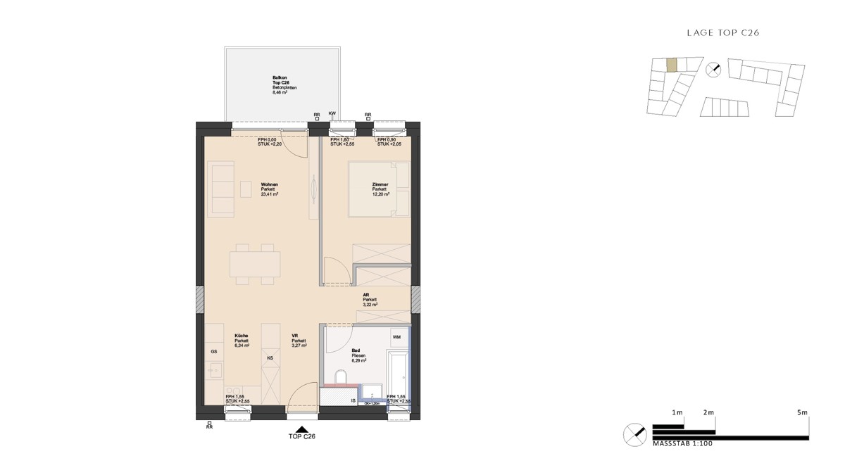 Das Projekt G r ü n G e b o r g e n befindet sich am ruhigen Rand des Linzer Stadtteils Neue Heimat, eingebettet in eine angenehme Wohngegend. In einer Sackgasse ohne Durchzugsverkehr gelegen, bietet die Adresse ein hohes Maß an Privatsphäre und Lebensqualität. Direkt angrenzend erstreckt sich eine Einfamilienhaussiedlung, in unmittelbarer Nachbarschaft befinden sich gepflegte Schrebergärten – ein Bild von Ruhe und naturnahem Wohnen. Im näheren Umfeld sorgen einige Gewerbebetriebe sowie der Maximarkt als Nahversorger für kurze Wege im Alltag. Ein besonderes Highlight ist die Nähe zur Traunau, einem geschützten Naturparadies, das nur wenige Minuten entfernt liegt. Die weitläufige, naturbelassene Aulandschaft lädt zu Spaziergängen, Joggingrunden oder Radtouren ein – über schmale, reizvolle Pfade mitten durch die grüne Oase. Auch in puncto Mobilität ist das Projekt G r ü n G e b o r g e n gut angebunden: Die Bushaltestelle Baintwiese befindet sich direkt beim Wohnprojekt und bietet Anschluss an den Stadtverkehr sowie Schnellbuslinien. Wer lieber mit dem Zug unterwegs ist, erreicht den Bahnhof Linz-Wegscheid in rund 15 Gehminuten.