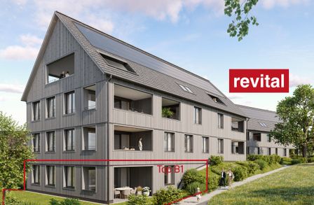 Eine Wohnung mit viel Platz für Alltag, Familie und Freizeit: großzügig, lichtdurchflutet und mit einem Privatgarten, der sich perfekt für Sonnenliegen, Hochbeet, Sandkasten und Grillabende eignet.