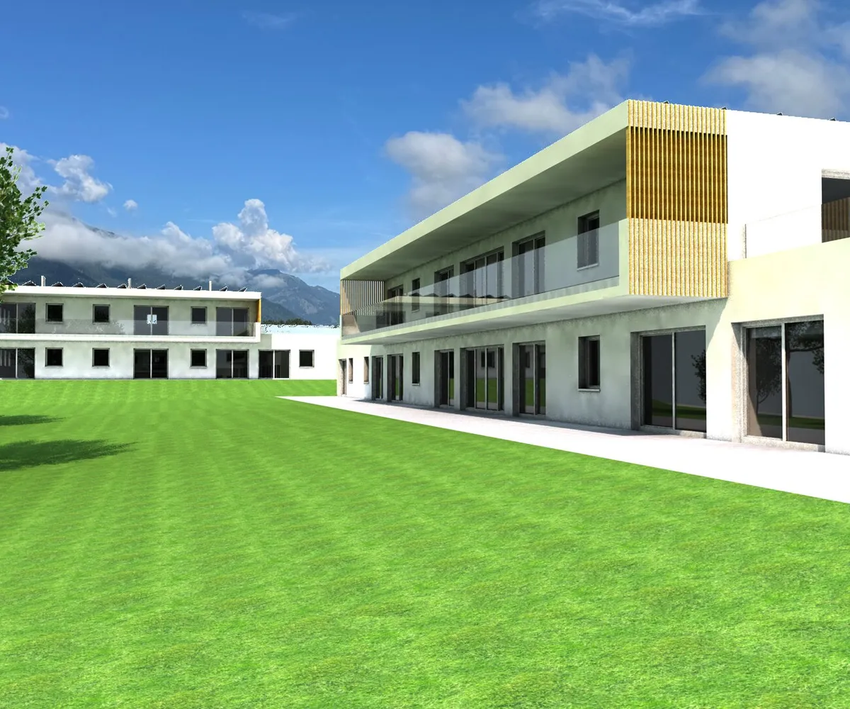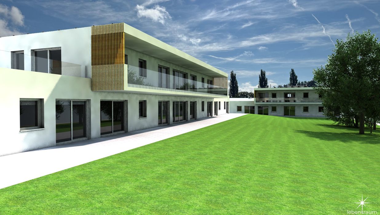Die drei ein- und zweigeschossigen Wohngebäude fügen sich harmonisch in das Umfeld der aus Einfamilienhäusern bestehenden Siedlung am Bergblickweg im Ort Pusarnitz der Marktgemeinde Lurnfeld ein.
