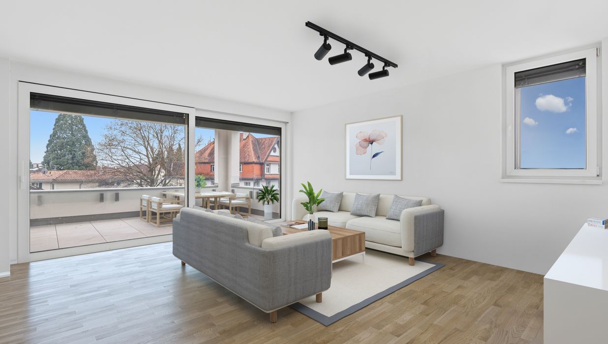 Großzügige, überdachte Terrassen : Jede Wohnung verfügt über eine überdachte Terrasse, die zum Entspannen und Genießen einlädt.