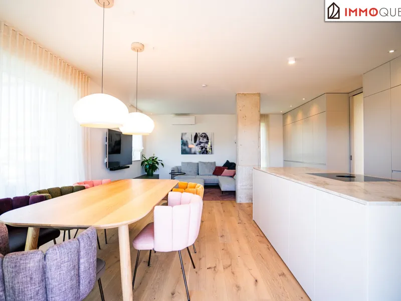 Schon beim Eintreten durch die massive Wohnungstür wird klar: Diese Wohnung ist mehr als nur ein Ort zum Wohnen – sie ist ein stilvoller Rückzugsort, ein Refugium für alle, die Design, Ruhe und Qualität schätzen. Auf rund 115 m² Wohnfläche , ergänzt durch einen großzügigen Balkon mit 23,6 m² , entfaltet sich ein Zuhause, das Licht, Raum und Stil in perfekter Harmonie vereint.