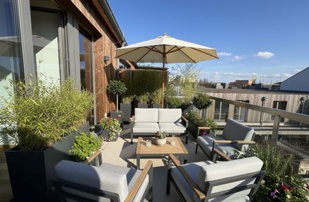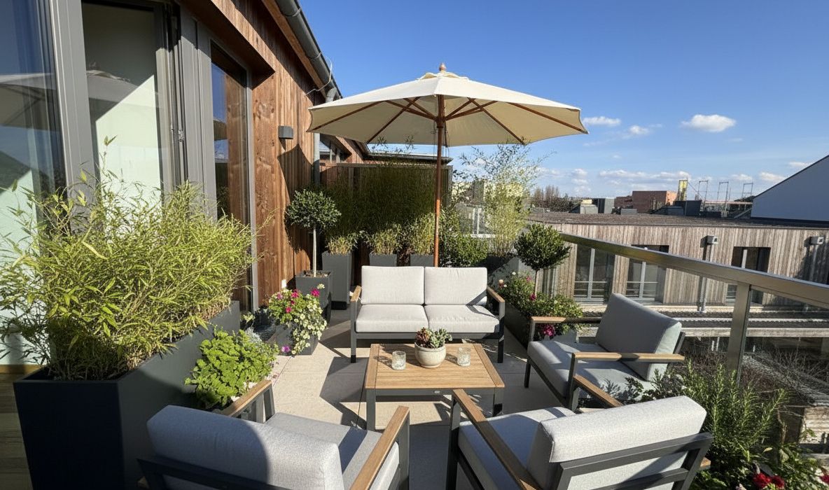 Die Terrasse erweitert den Wohnraum nach außen und bietet eine Fläche für Erholung und Freizeitgestaltung.