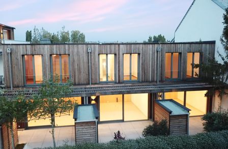 Edelstahlgeländer und hochwertige Holzfassade