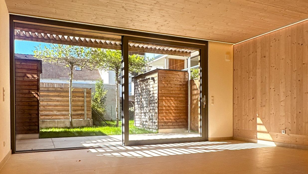 Der offene Wohn- und Essbereich bildet das Zentrum der Maisonette und bietet direkten Zugang zur Terrasse und zum privaten Garten. Über die interne Treppe gelangen Sie in die obere Ebene, die zusätzliche Schlafzimmer, Kinderzimmer oder Homeoffice bereitstellt. Große Fensterflächen sorgen für viel Tageslicht und ein freundliches Wohnambiente.