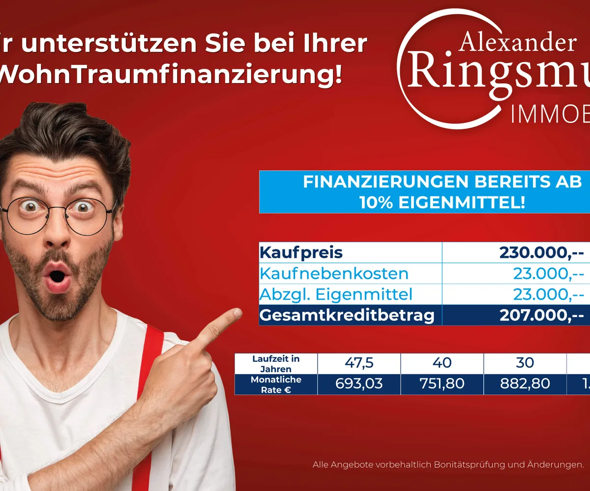 *Der Vertrag kommt nicht mit der INFINA Credit Broker GmbH zustande. Das Objekt wird von einem externen Immobilienunternehmen angeboten. Allfällige aus dem Vertragsabschluss resultierende Rechte sind ausschließlich gegenüber dem anbietenden Immobilienunternehmen geltend zu machen. Wir weisen Sie darauf hin, dass die gemachten Angaben und Informationen lediglich unverbindliche Vorabinformationen sind und daher ohne Gewähr erfolgen. Der Vermittler ist als Doppelmakler tätig.