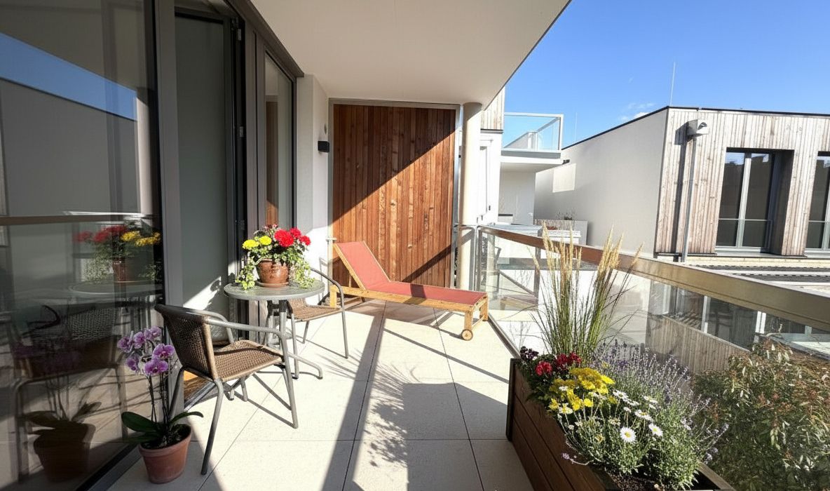 Die Loggia erweitert den Wohnraum nach außen und schafft eine kleine Fläche für frische Luft und Entspannung.