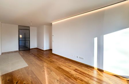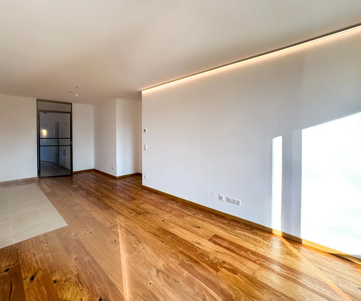 Der Wohn- und Essbereich bildet das Zentrum der Wohnung und bietet direkten Zugang zur Loggia. Zwei weitere Zimmer eignen sich ideal als Schlafzimmer, Kinderzimmer oder Homeoffice. Große Fenster sorgen für ein helles und freundliches Ambiente.