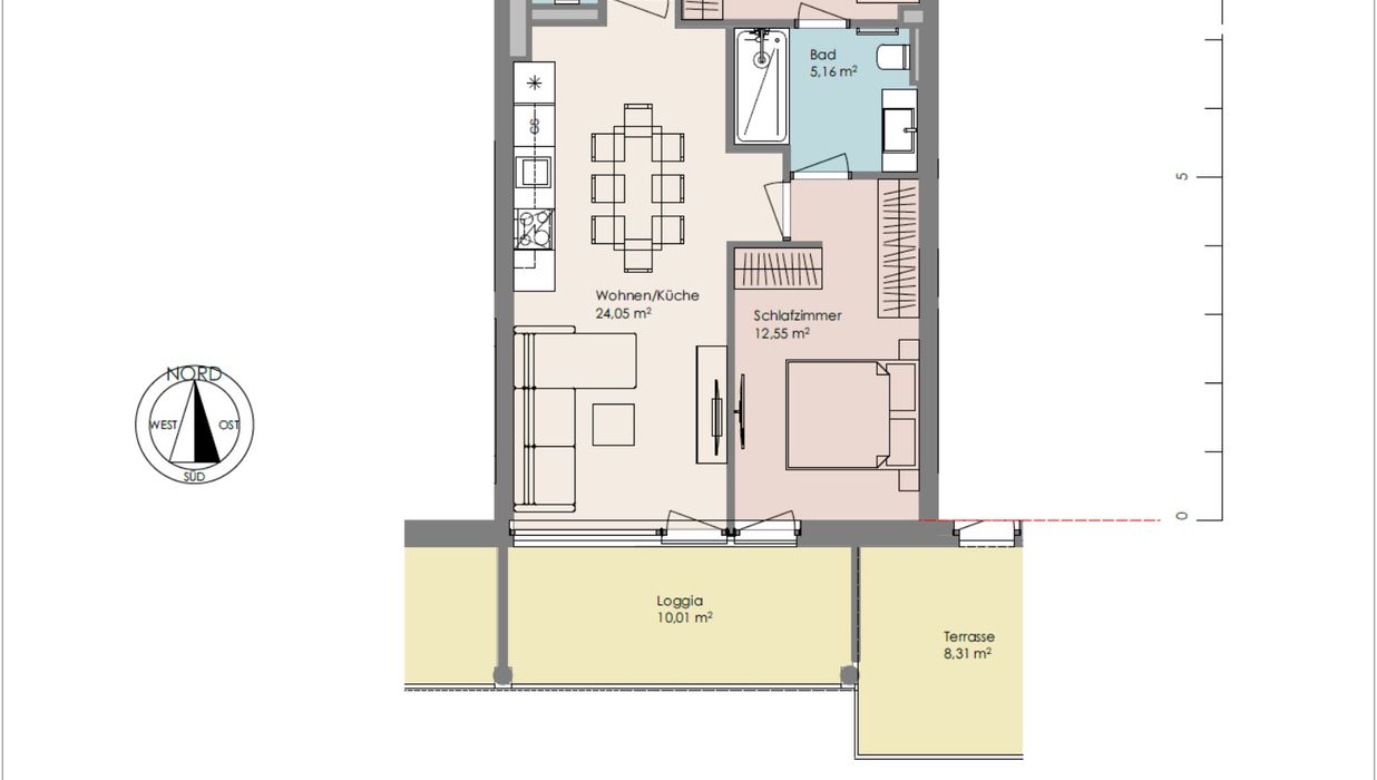Wohnen/Küche 24,05 m²