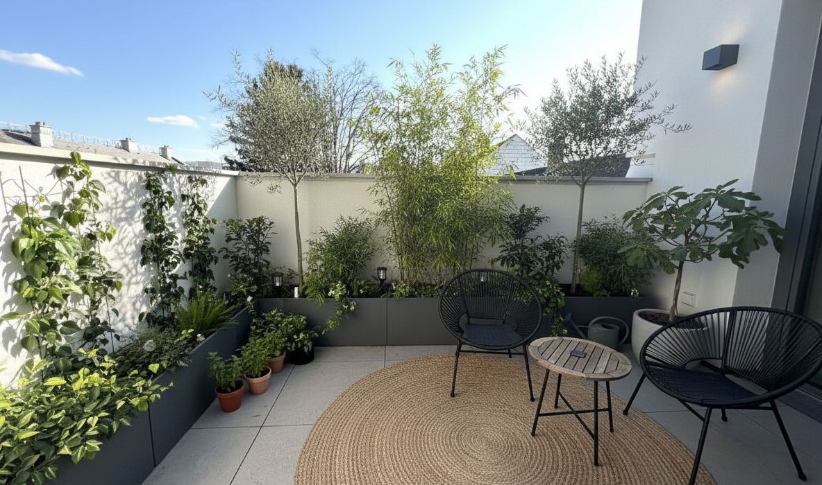 Die Terrasse erweitert den Wohnraum nach außen und bietet Platz für entspannte Stunden im Freien.