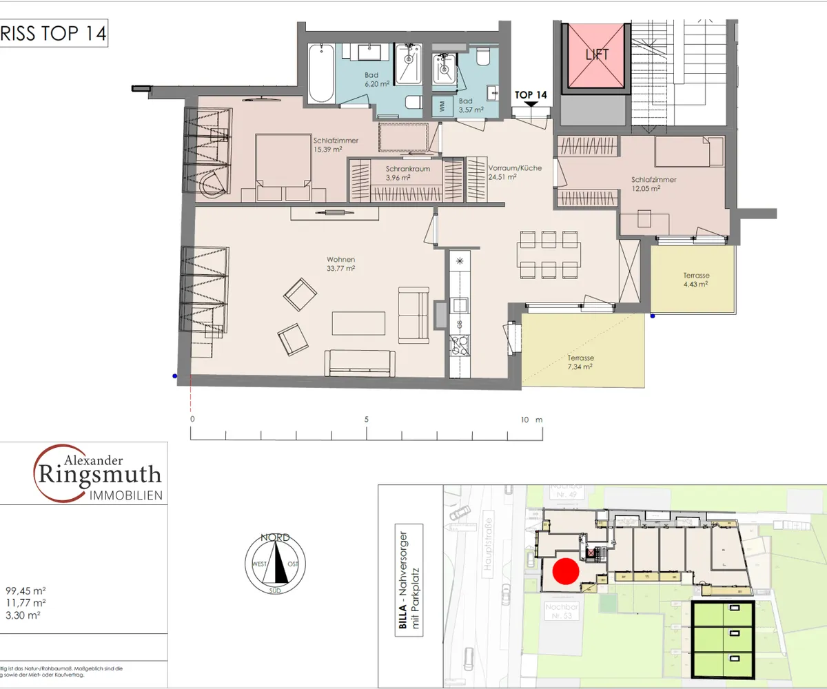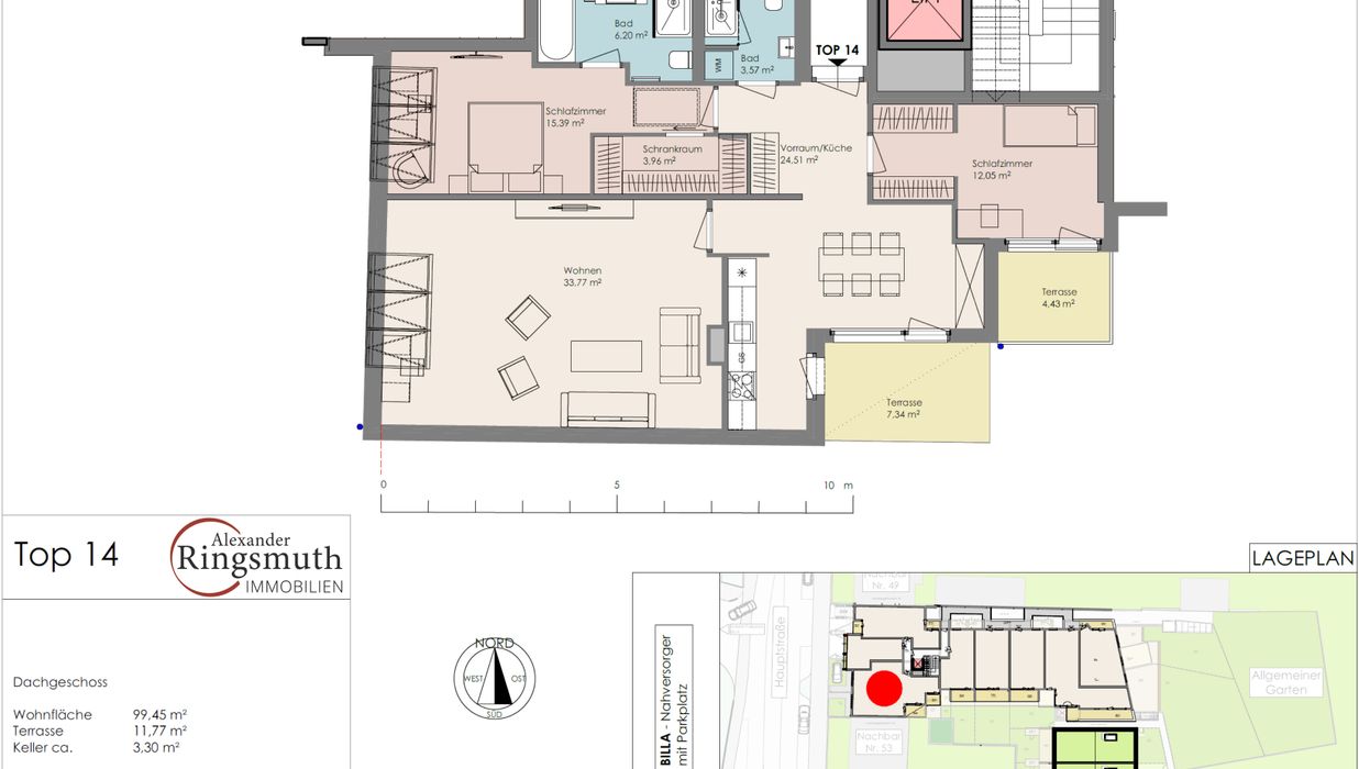 In der modernen Wohnanlage „Die Oase“ in Maria Enzersdorf steht diese großzügige 4-Zimmer-Dachgeschosswohnung zum Verkauf. Sie überzeugt durch eine durchdachte Raumaufteilung, helle Wohnbereiche und eine Terrasse mit einem wunderschönen Fernblick.