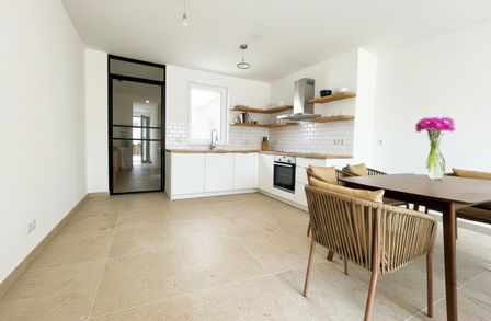 Der Wohn- und Essbereich bildet das Zentrum der Wohnung und bietet direkten Zugang zur Terrasse und in den eigenen Garten. Große Fensterflächen sorgen für ein helles und angenehmes Wohnambiente.
