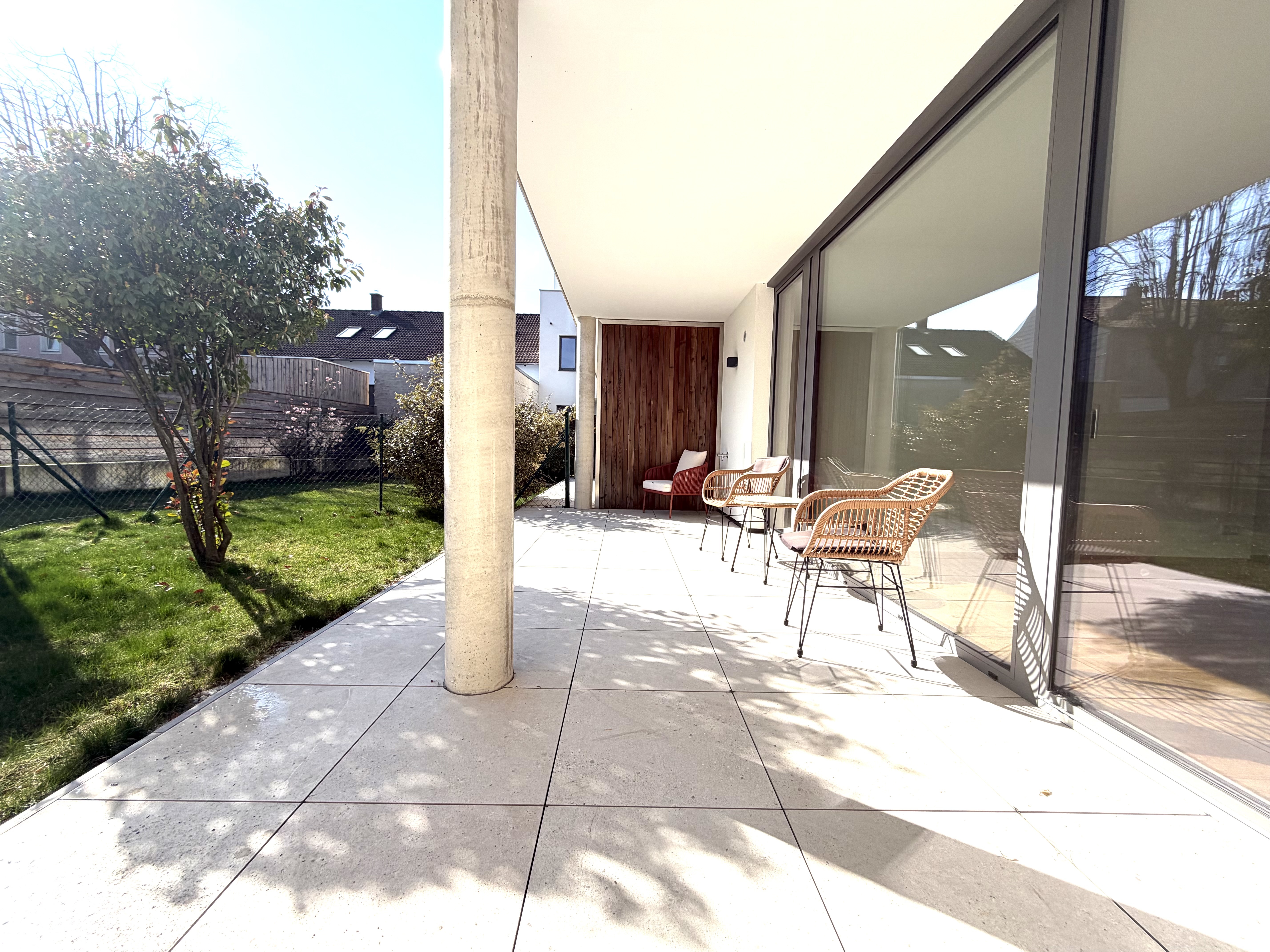Loggia, Terrasse und Garten erweitern den Wohnraum nach außen und schaffen eine private Wohlfühloase für Entspannung und Freizeitgestaltung.