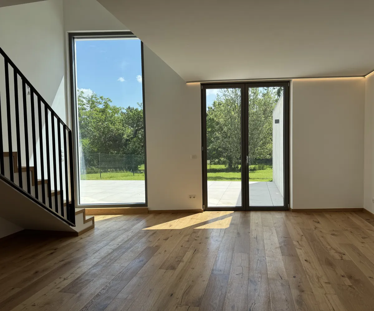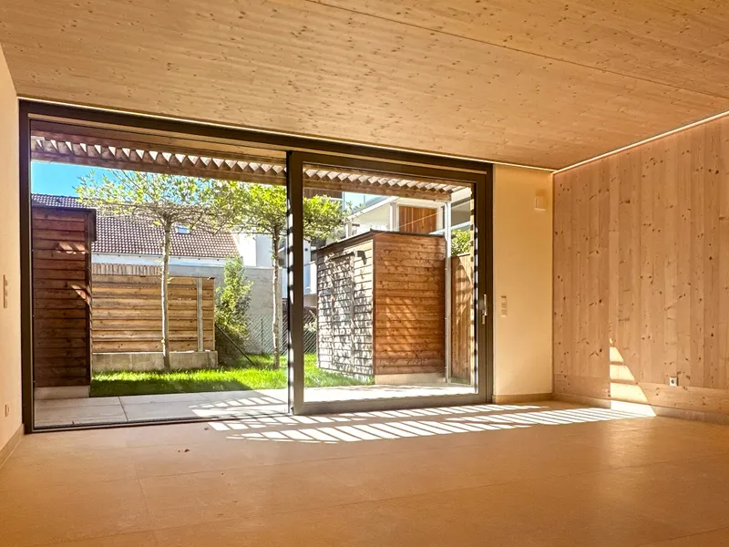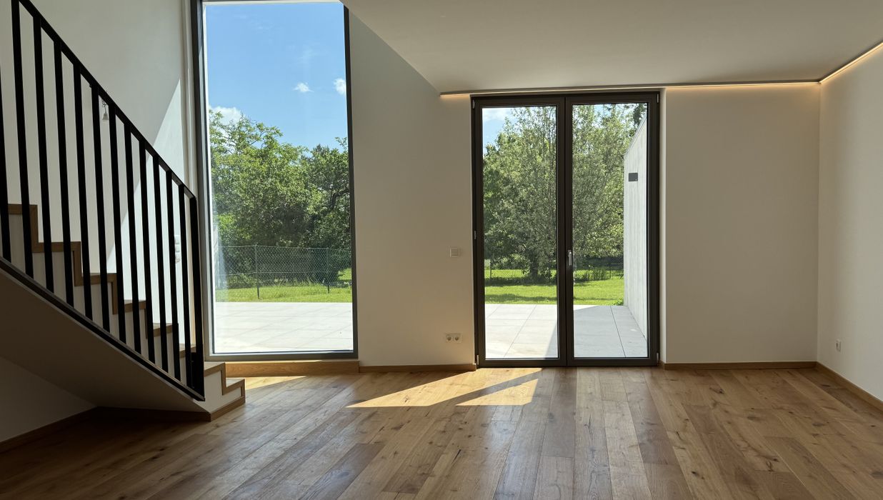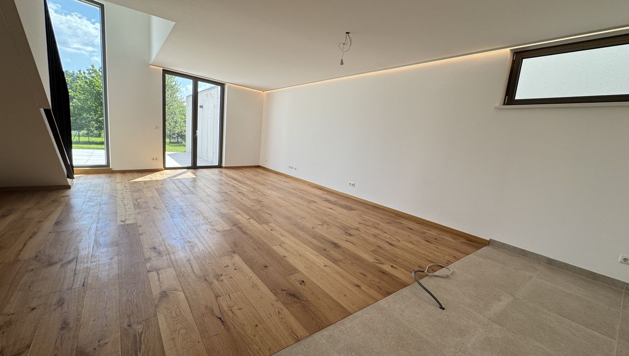 Der offene Wohn- und Essbereich bildet das Zentrum der Maisonette und bietet direkten Zugang zur Terrasse und zum privaten Garten. Über die interne Treppe gelangen Sie in die obere Ebene, die zusätzliche Zimmer für Schlafzimmer, Kinderzimmer oder Homeoffice bereitstellt. Große Fensterflächen sorgen für viel Tageslicht und ein freundliches Wohnambiente.