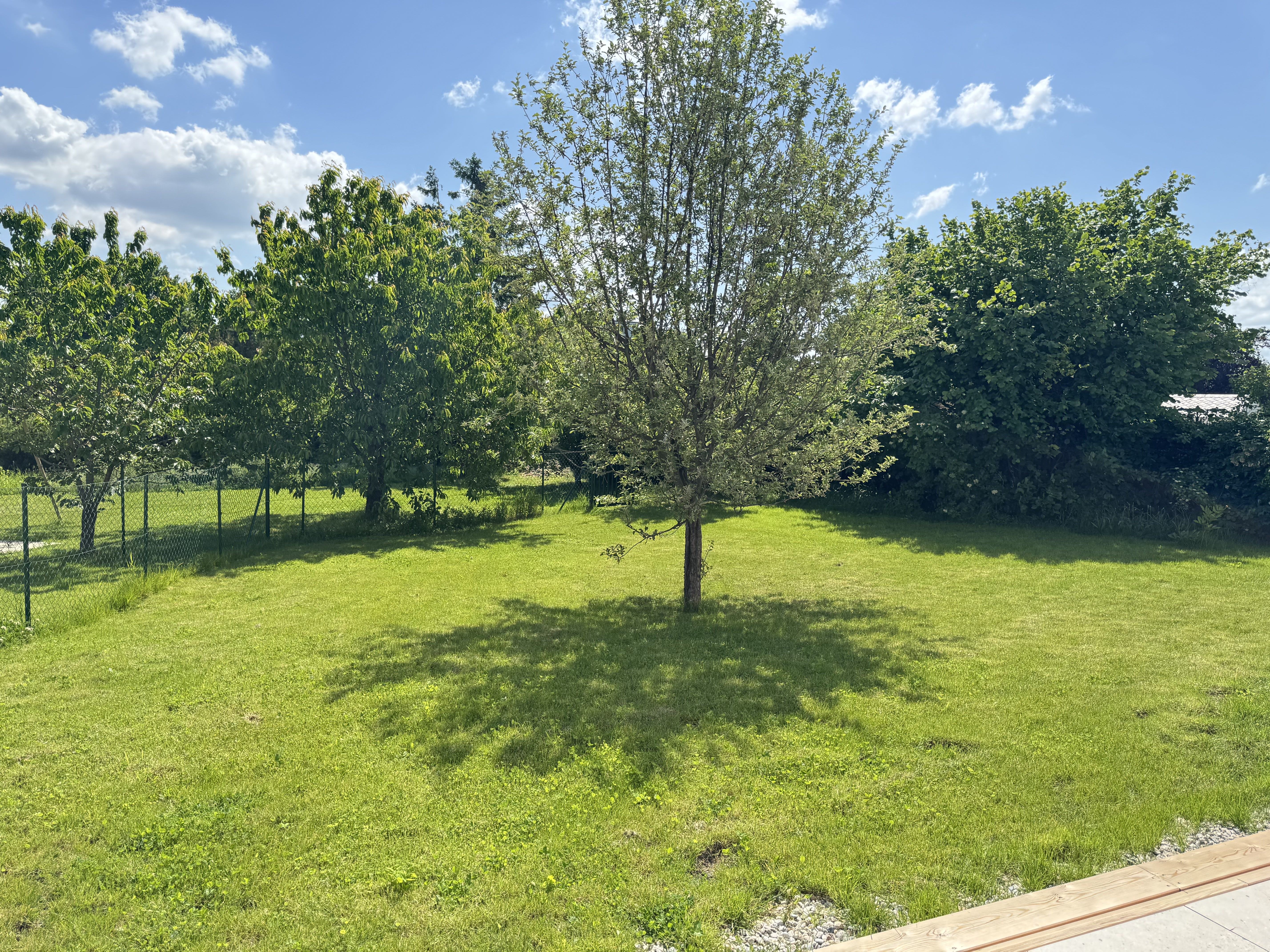 Terrasse und weitläufiger Garten erweitern den Wohnraum nach außen und schaffen eine private Wohlfühloase für Erholung und Freizeitgestaltung.