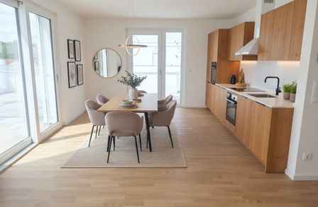 Die Wohnungen bestechen durch durchdachte Grundrisse, großzügige Fensterfronten und moderne Ausstattung. Ob eine gemütliche Garçonnière mit ca. 32m² oder eine weitläufige 5-Zimmer-Wohnung mit bis zu ca. 119m² – jede Einheit bietet Ihnen ein Zuhause zum Wohlfühlen. Die nach Süden oder Südosten ausgerichteten Wohneinheiten verfügen über großzügige Balkone und Terrassen, die Erdgeschoßwohnungen bieten zudem private Gärten. Genießen Sie den Luxus, auf Pergolen Weinreben ranken zu lassen und die Natur hautnah zu erleben.