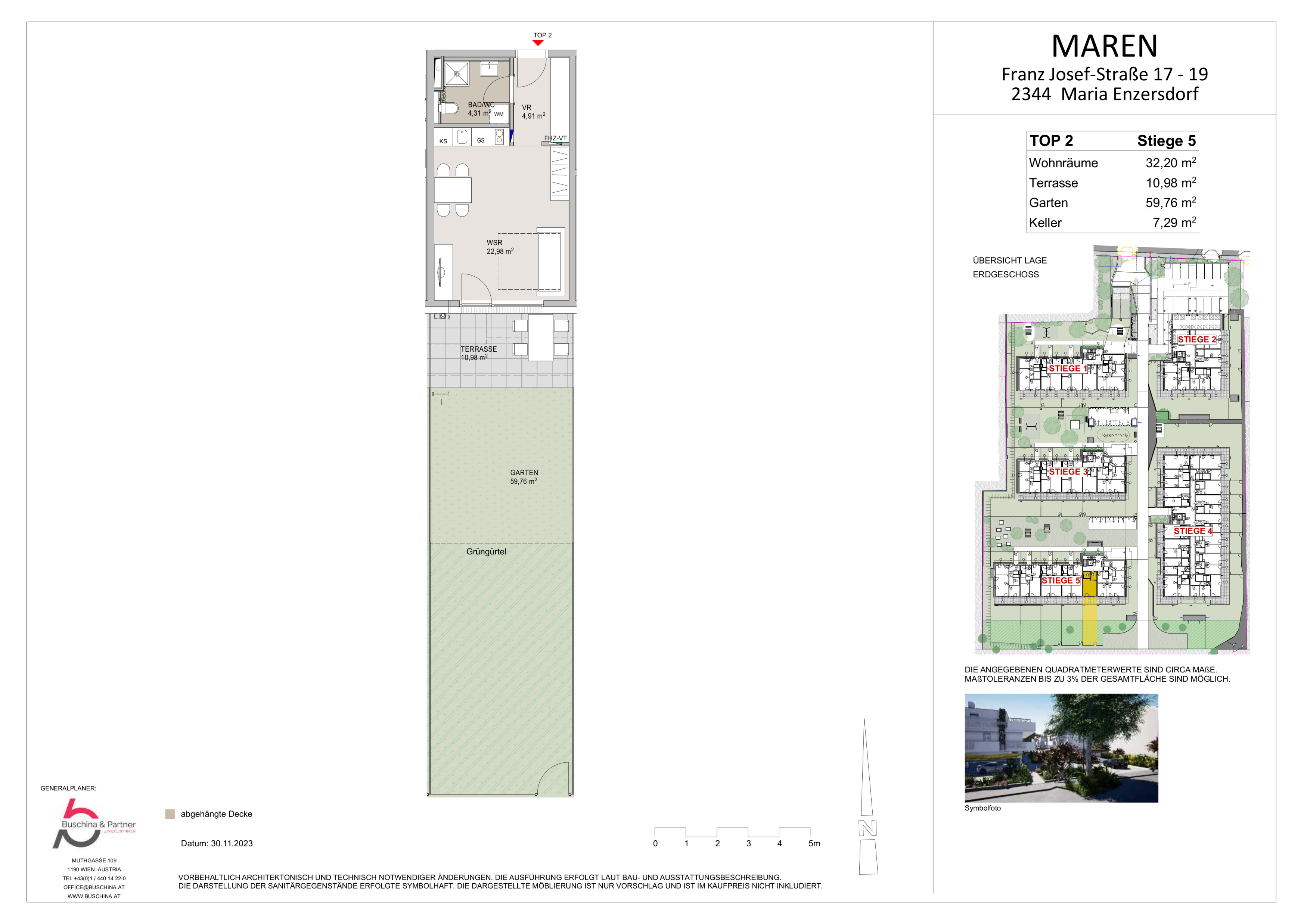 Die Wohnungen bestechen durch durchdachte Grundrisse, großzügige Fensterfronten und moderne Ausstattung. Ob eine gemütliche Garçonnière mit ca. 32m² oder eine weitläufige 5-Zimmer-Wohnung mit bis zu ca. 119m² – jede Einheit bietet Ihnen ein Zuhause zum Wohlfühlen. Die nach Süden oder Südosten ausgerichteten Wohneinheiten verfügen über großzügige Balkone und Terrassen, die Erdgeschoßwohnungen bieten zudem private Gärten. Genießen Sie den Luxus, auf Pergolen Weinreben ranken zu lassen und die Natur hautnah zu erleben.