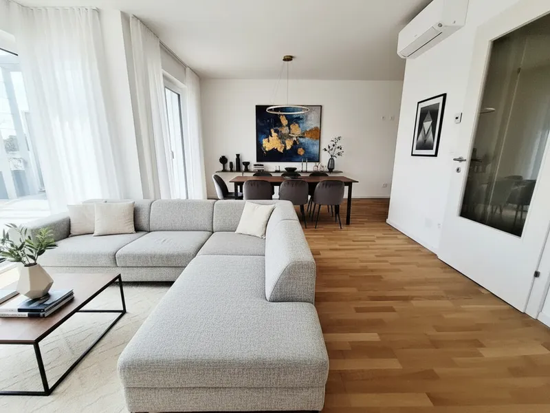 Die Wohnungen bestechen durch durchdachte Grundrisse, großzügige Fensterfronten und moderne Ausstattung. Ob eine gemütliche Garçonnière mit ca. 32m² oder eine weitläufige 5-Zimmer-Wohnung mit bis zu ca. 119m² – jede Einheit bietet Ihnen ein Zuhause zum Wohlfühlen. Die nach Süden oder Südosten ausgerichteten Wohneinheiten verfügen über großzügige Balkone und Terrassen, die Erdgeschoßwohnungen bieten zudem private Gärten. Genießen Sie den Luxus, auf Pergolen Weinreben ranken zu lassen und die Natur hautnah zu erleben.