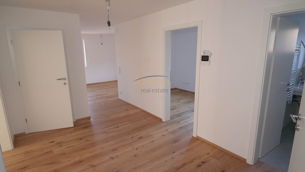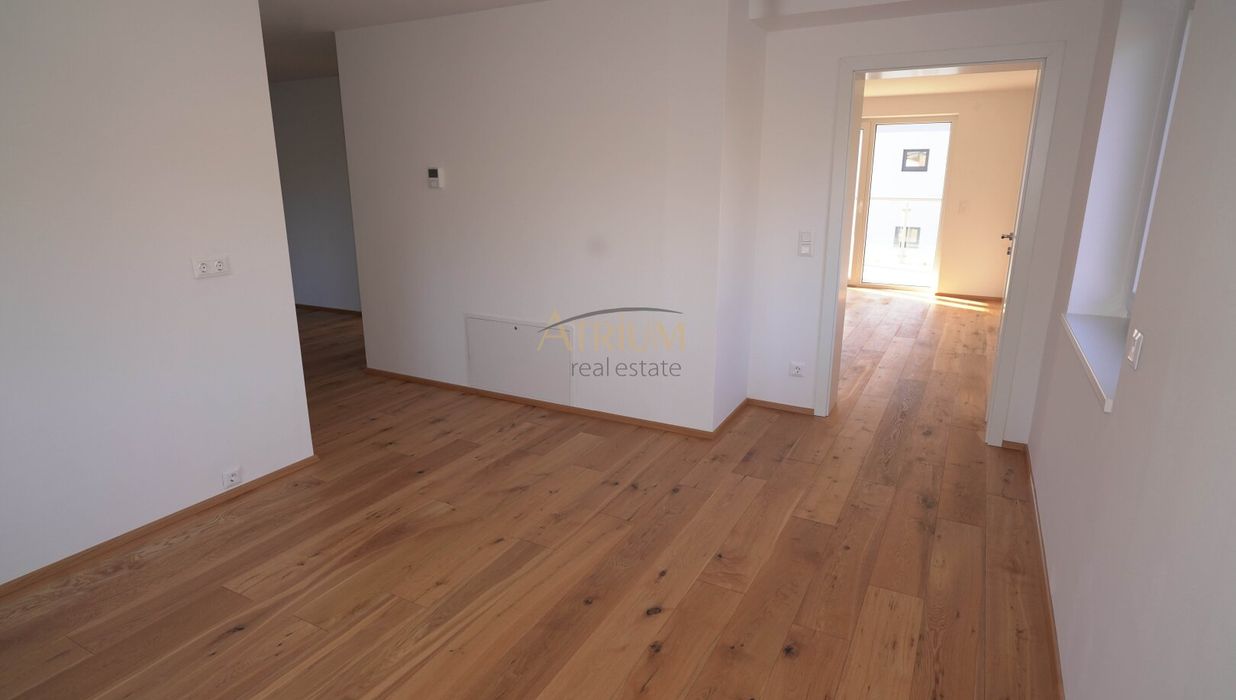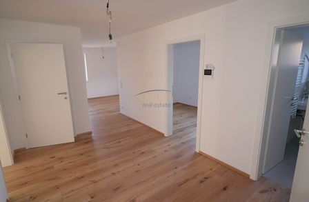 Bodenbeläge: Fertigparkett für Küchen, Zimmer und Wohnbereiche; Fliesen in Abstellraum, Bad und WC; Steinplatten auf Terrassen und Balkonen.