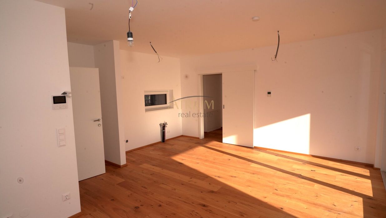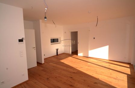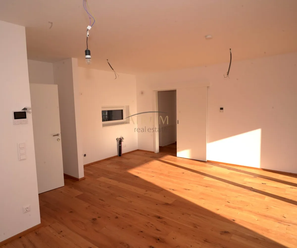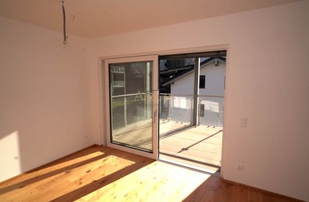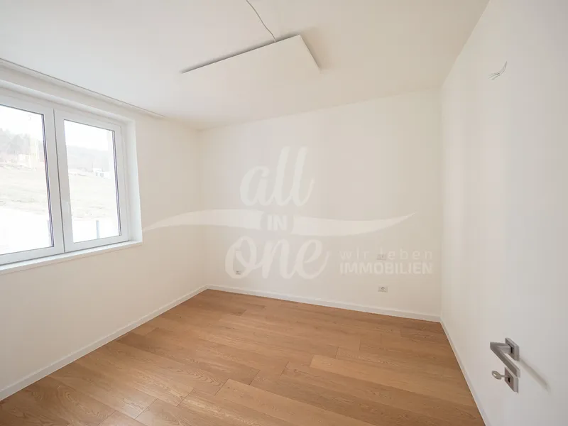 Bodenbeläge: Fertigparkett für Küchen, Zimmer und Wohnbereiche; Fliesen in Abstellraum, Bad und WC; Steinplatten auf Terrassen und Balkonen.