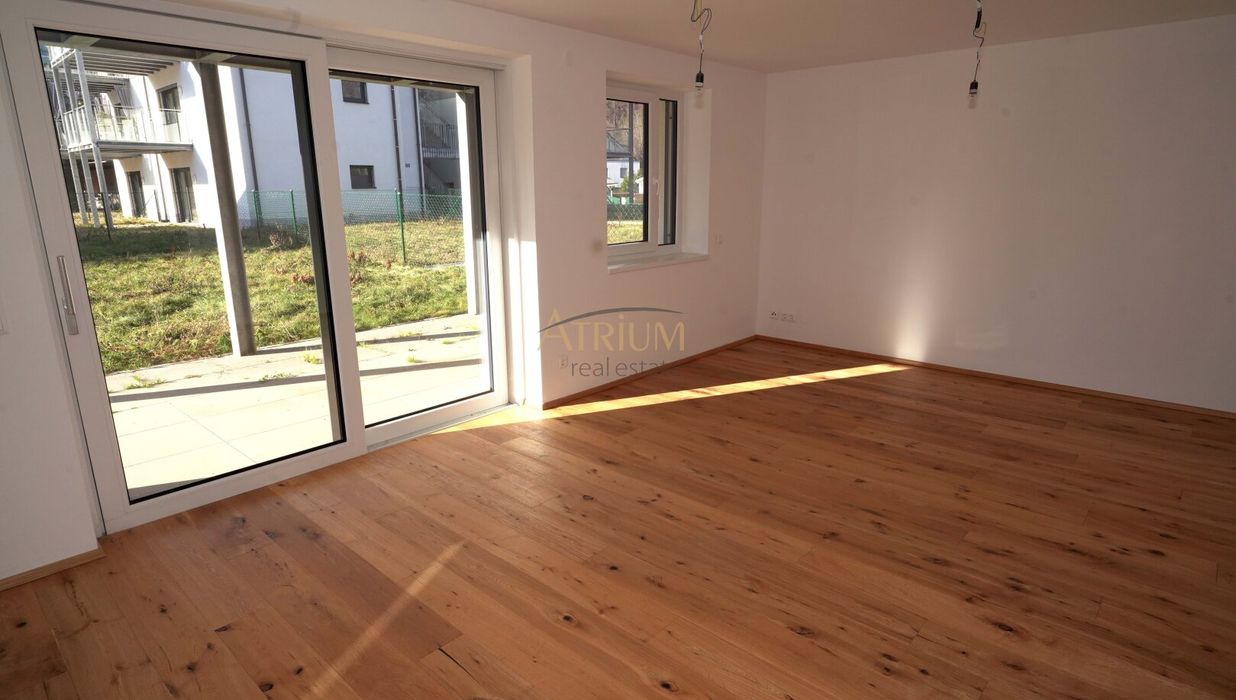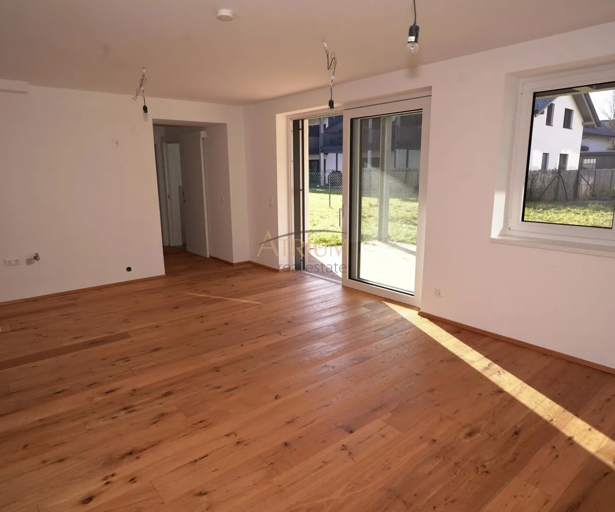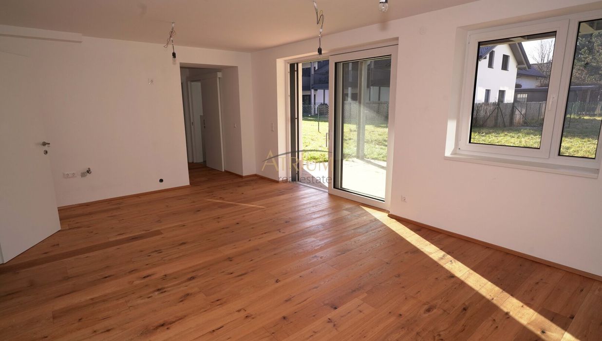 Bodenbeläge: Fertigparkett für Küchen, Zimmer und Wohnbereiche; Fliesen in Abstellraum, Bad und WC; Steinplatten auf Terrassen und Balkonen.