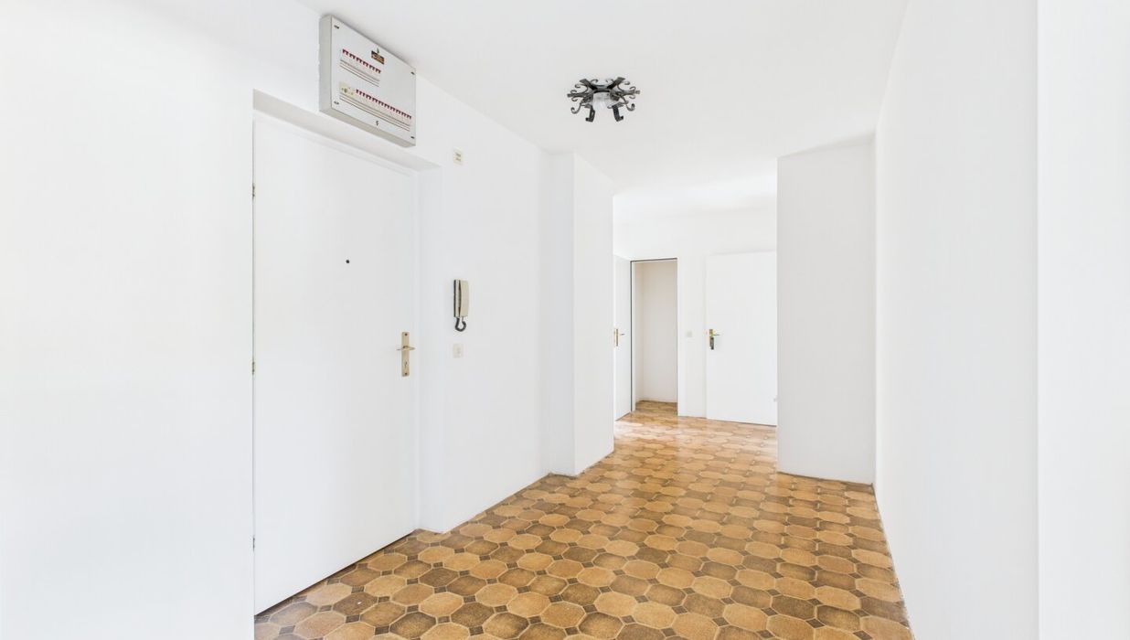 Die Wohnung befindet sich im dritten Stock ohne Lift , belohnt dafür jedoch mit Ruhe, Licht und einem offenen Wohngefühl.