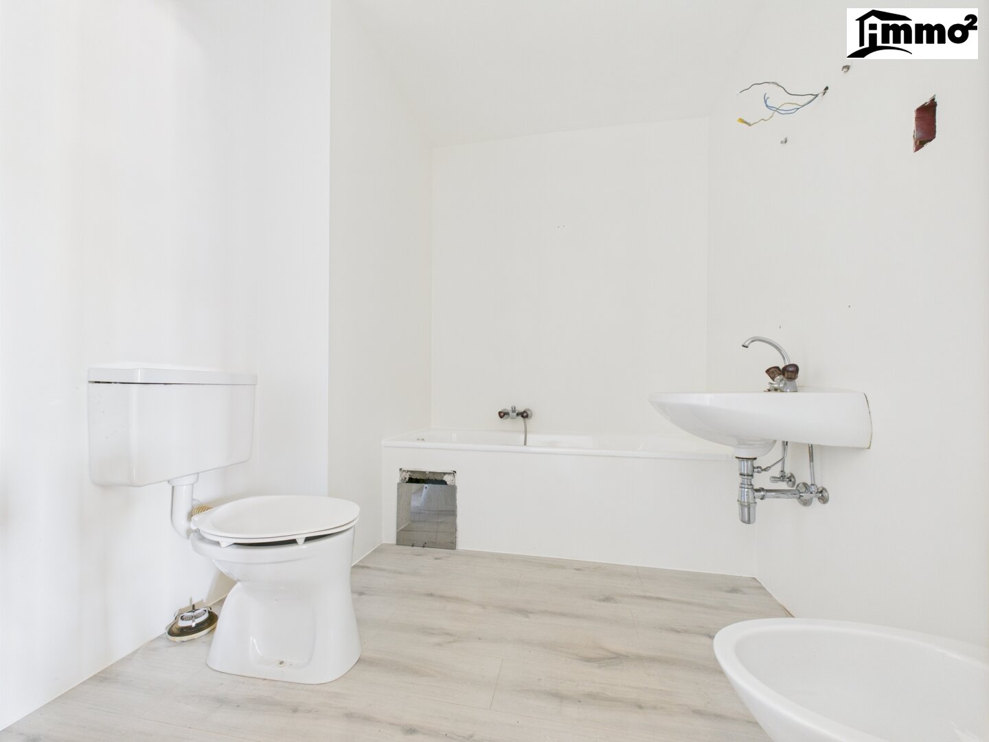 Ein drittes Badezimmer mit Badewanne, WC und Waschmaschinenanschluss ergänzt das Raumangebot und bietet zusätzlichen Komfort.