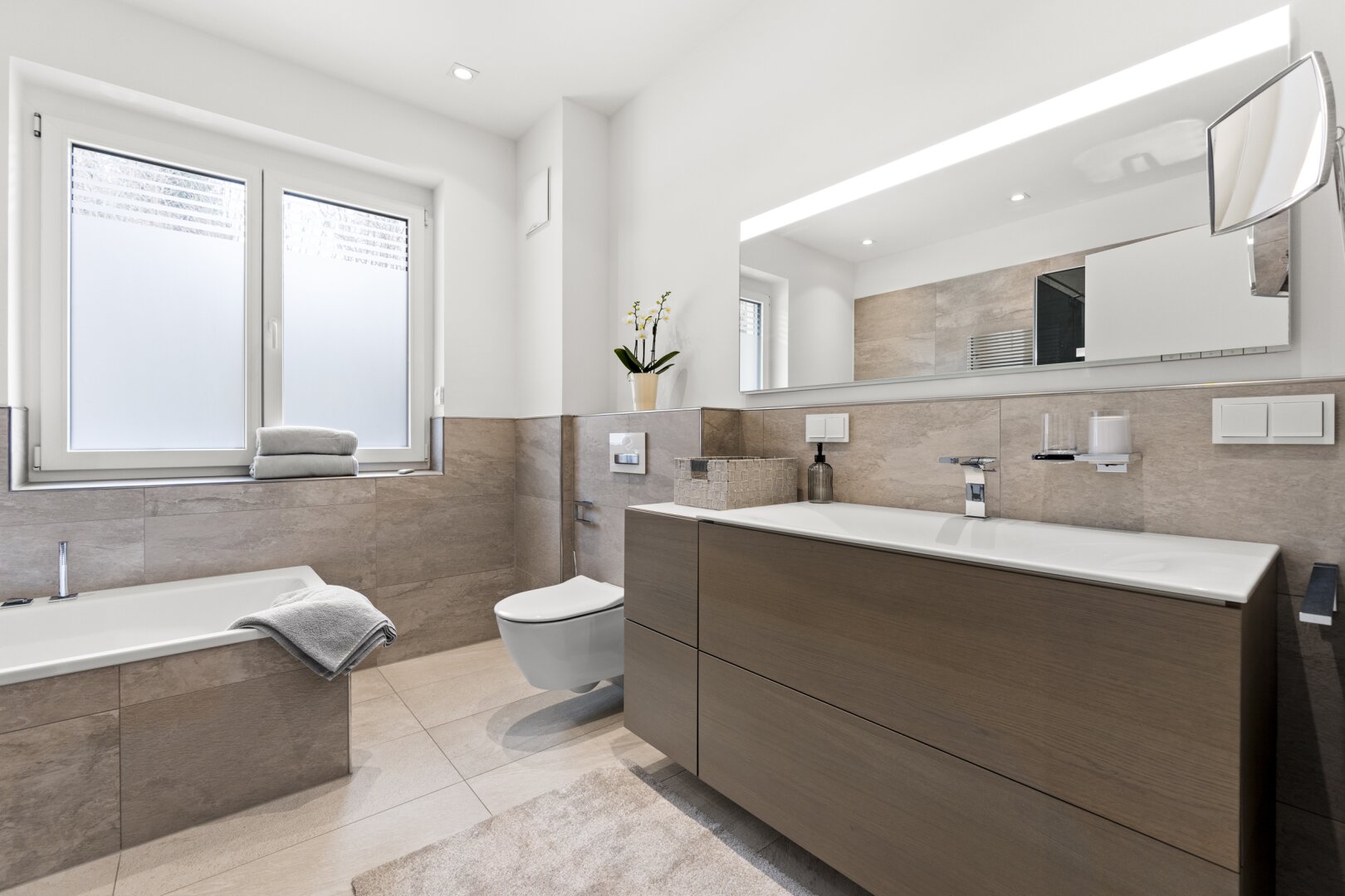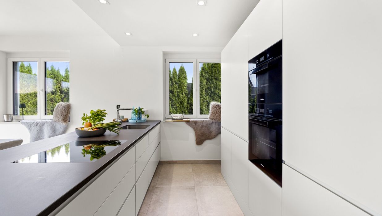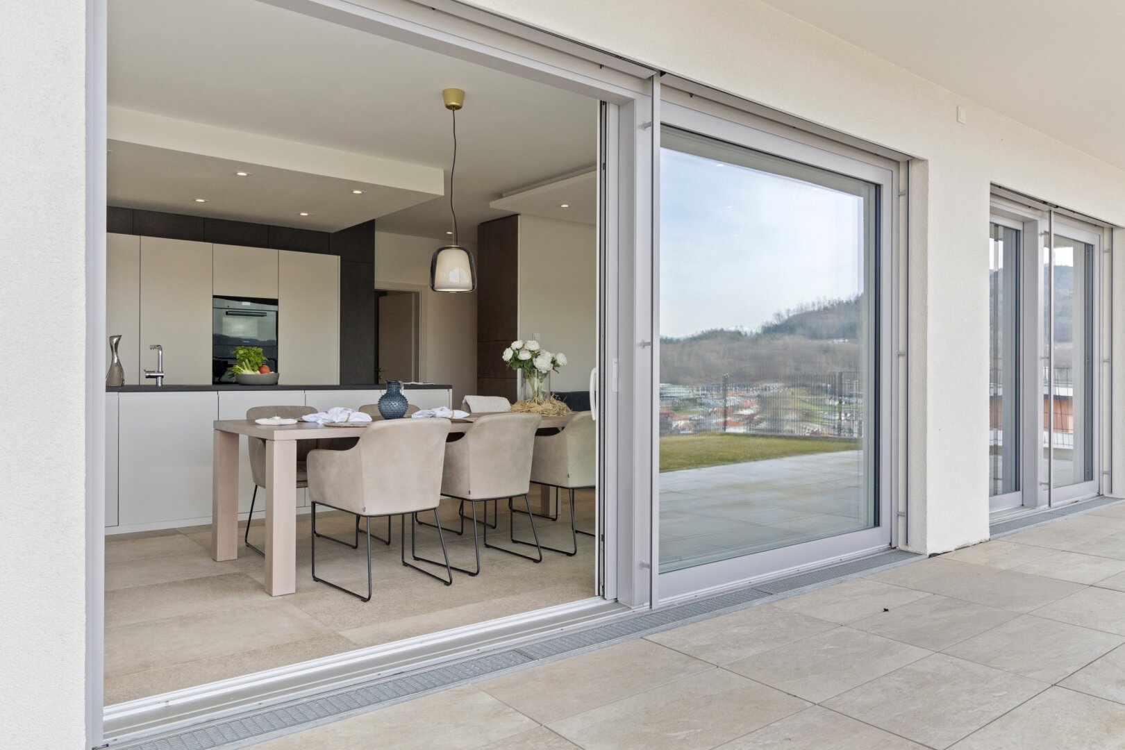 Helle Materialien und große Fensterflächen sorgen für eine wunderbare Lichtdurchflutung.