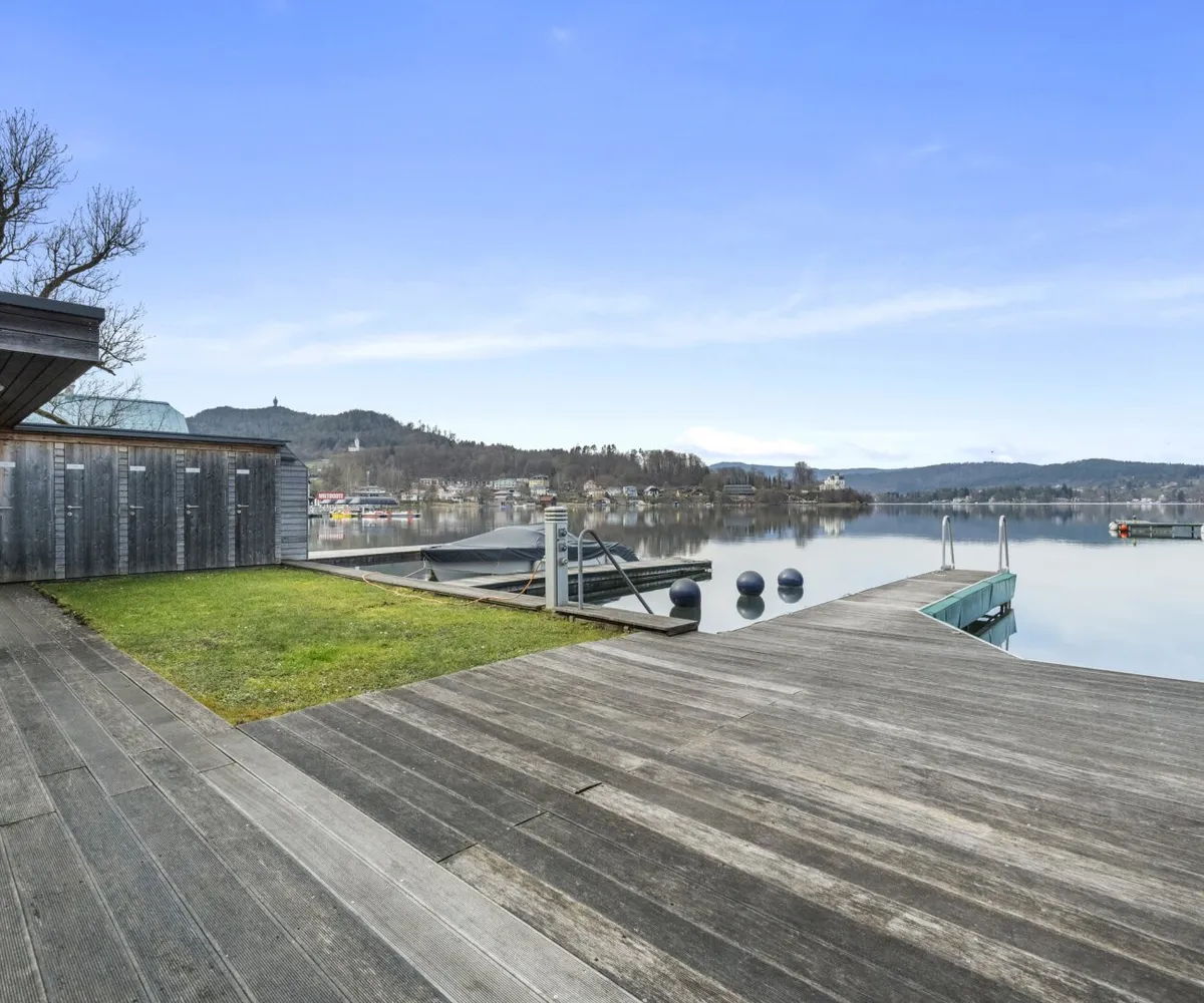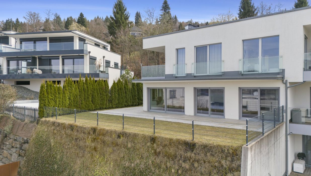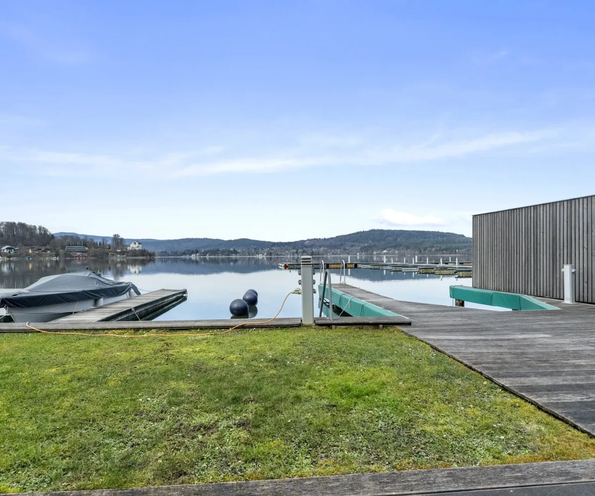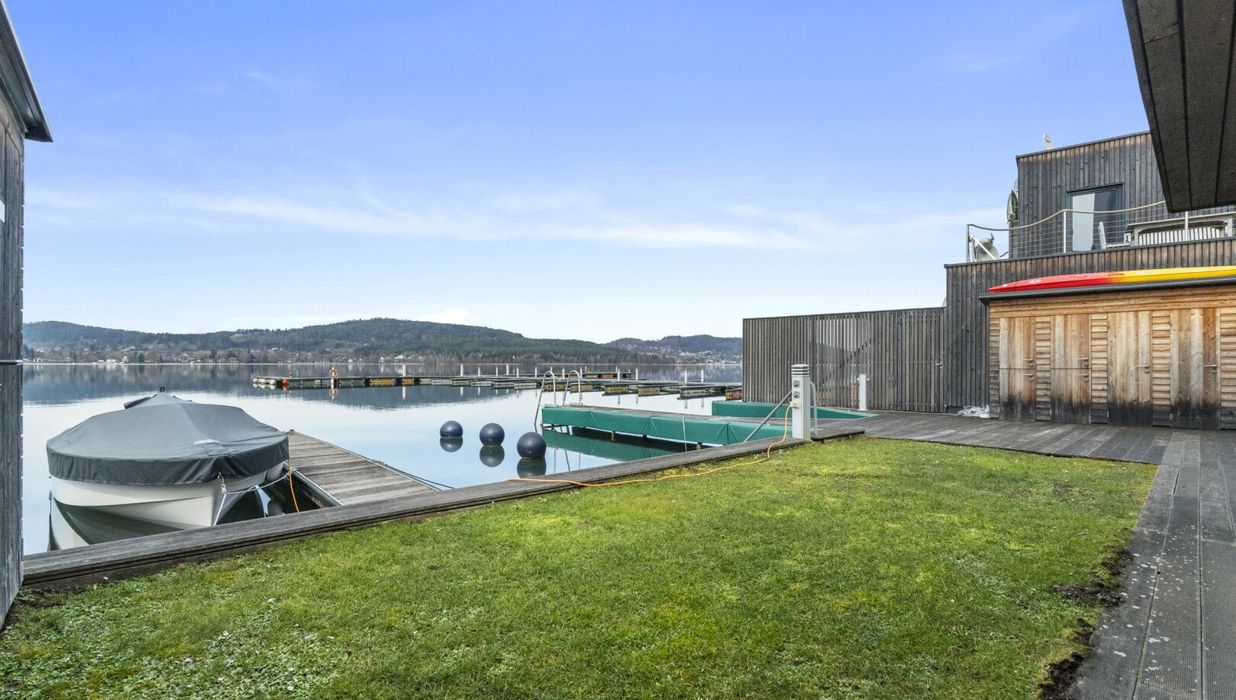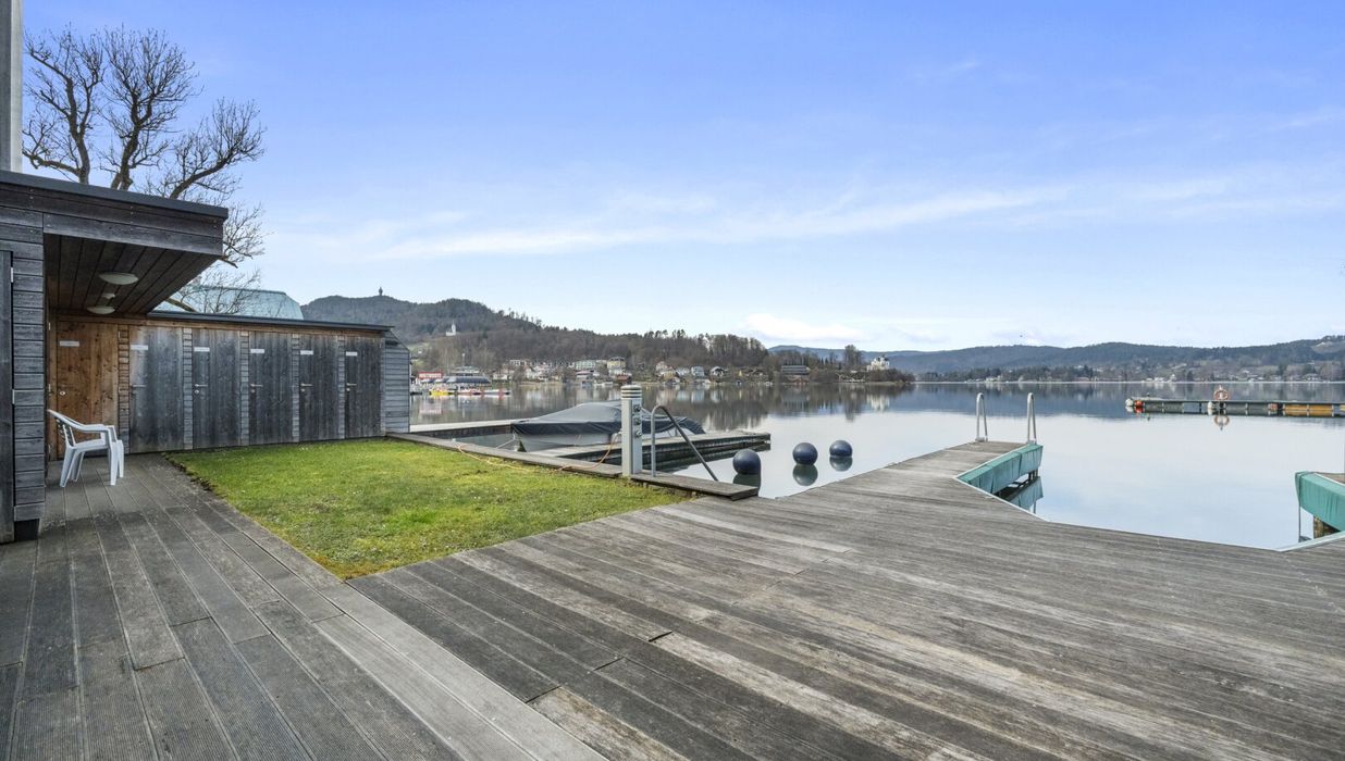 Der private Garten mit Blick auf den türkisen Wörthersee bietet eine gemütliche Atmosphäre, in der Wohnträume wahr werden.