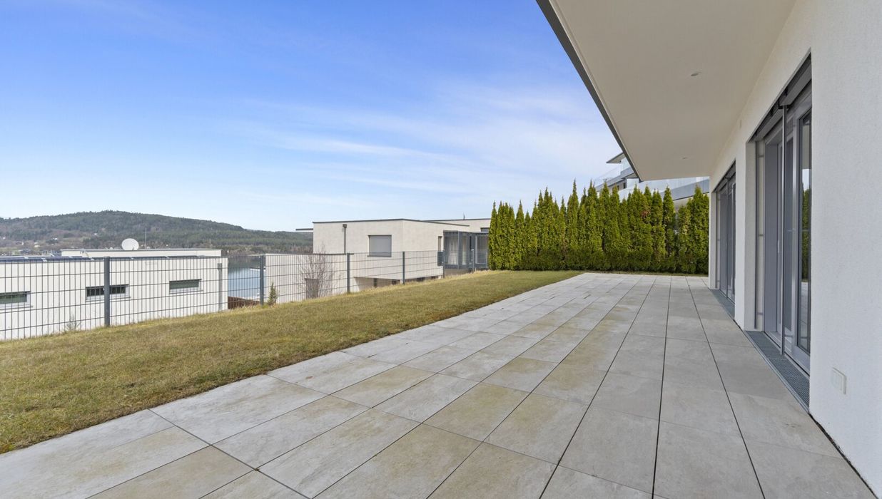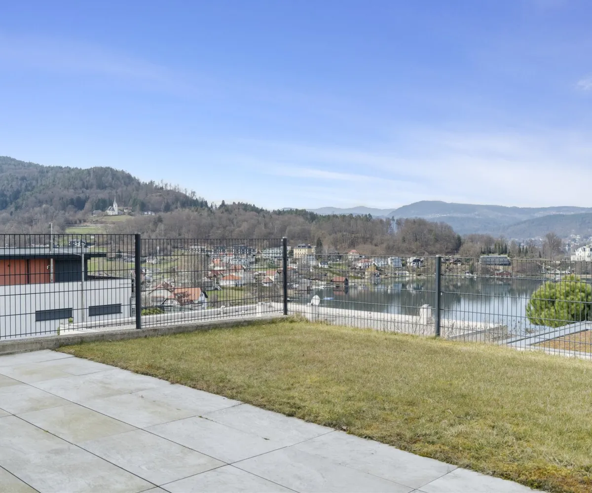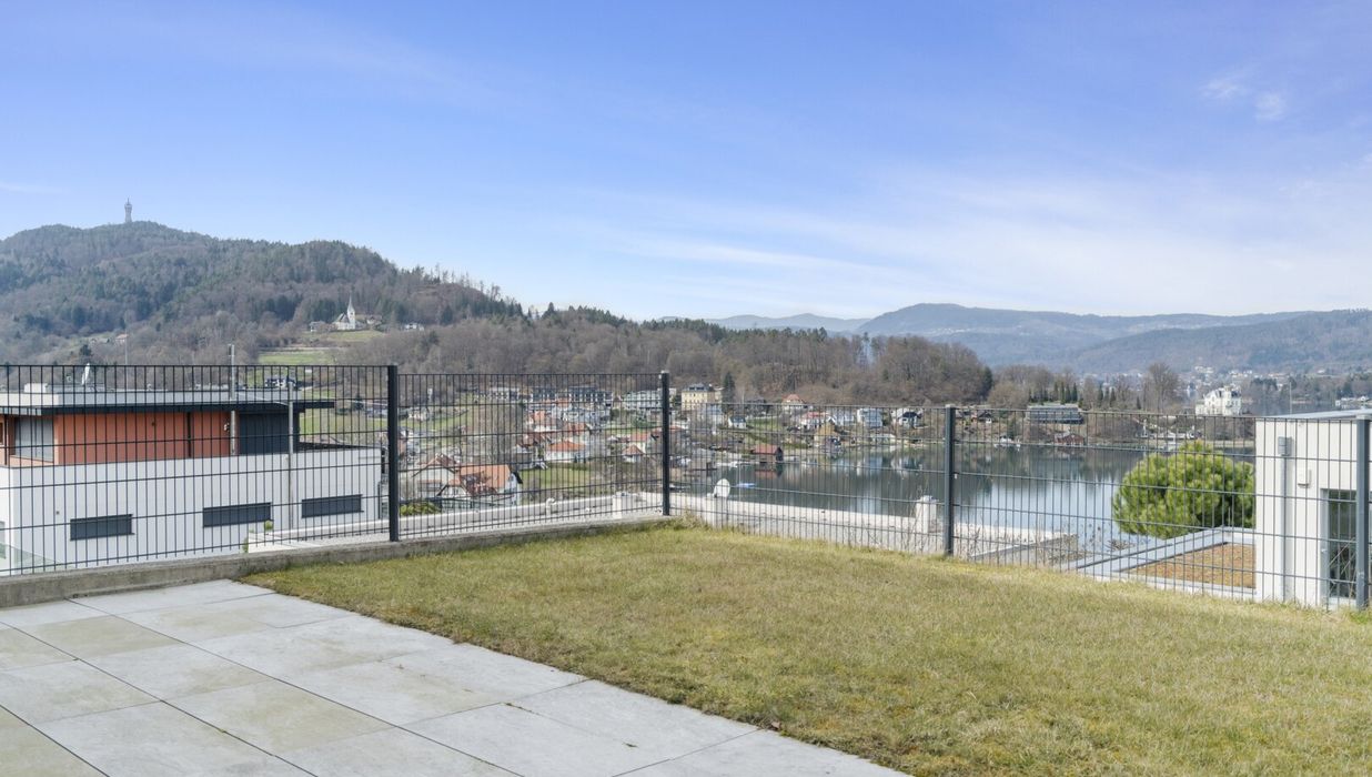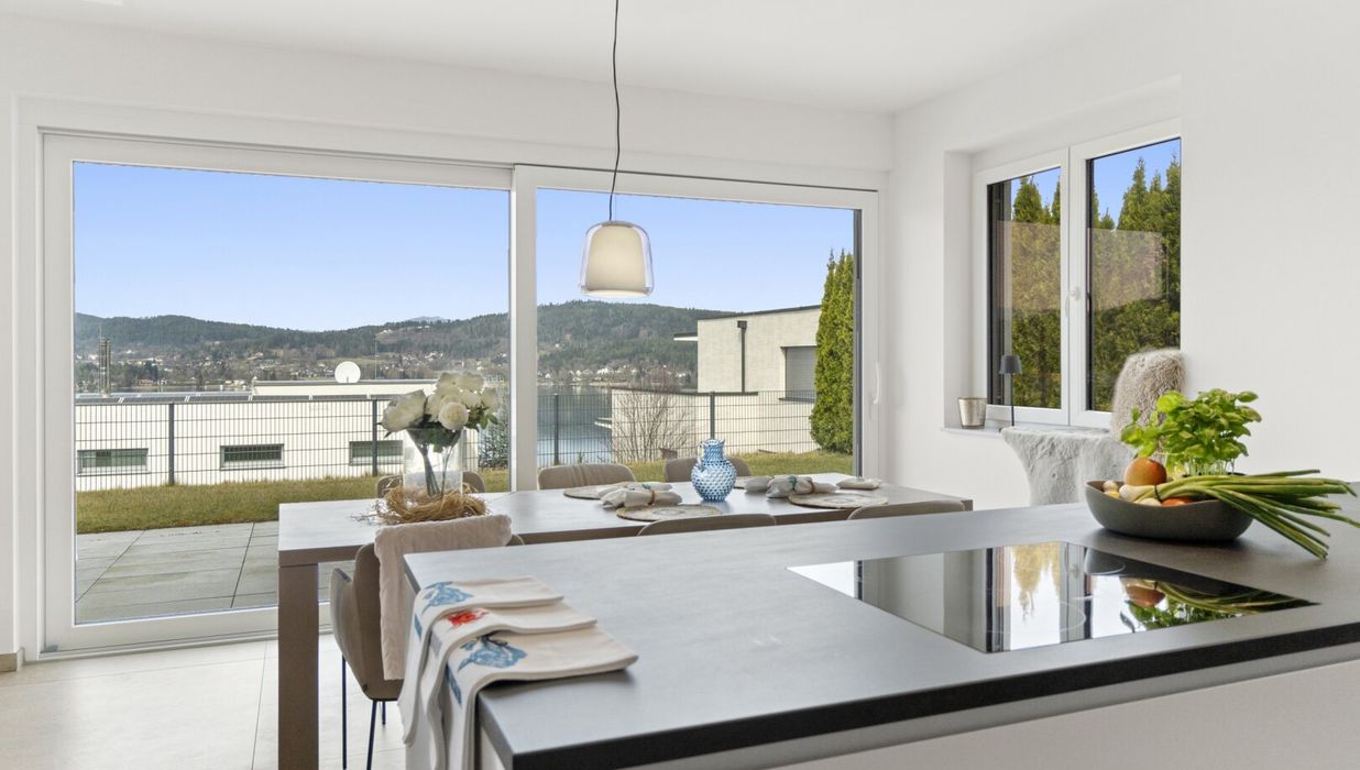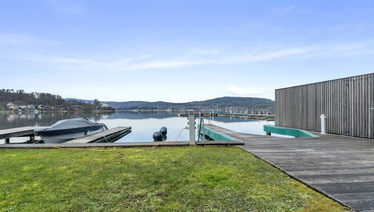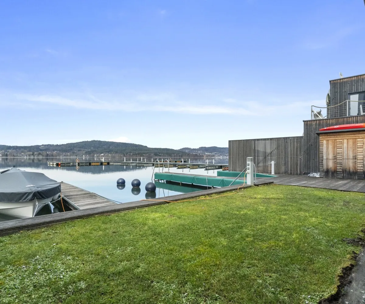 Der private Garten mit Blick auf den türkisen Wörthersee bietet eine gemütliche Atmosphäre, in der Wohnträume wahr werden.
