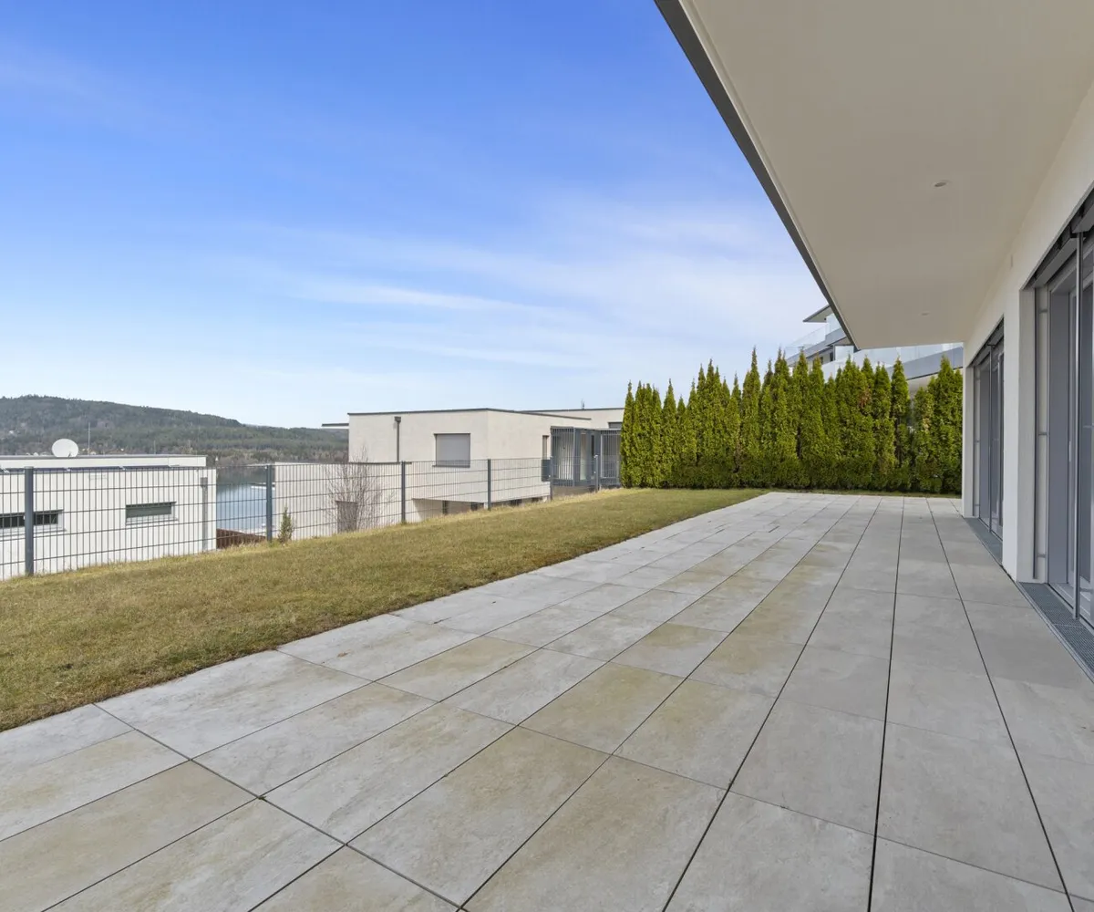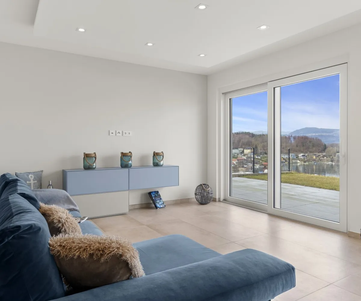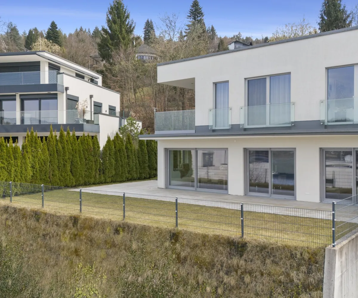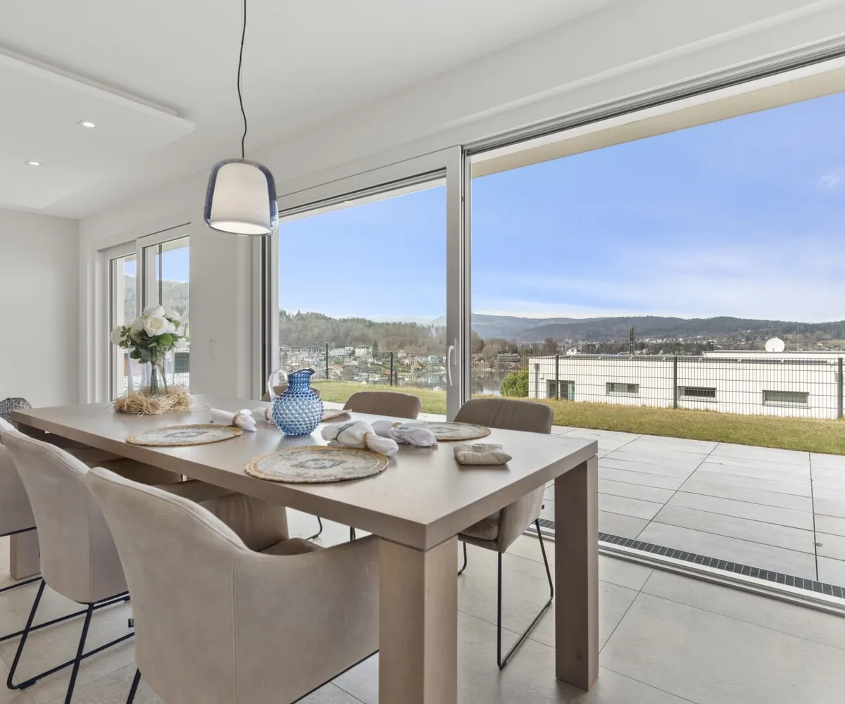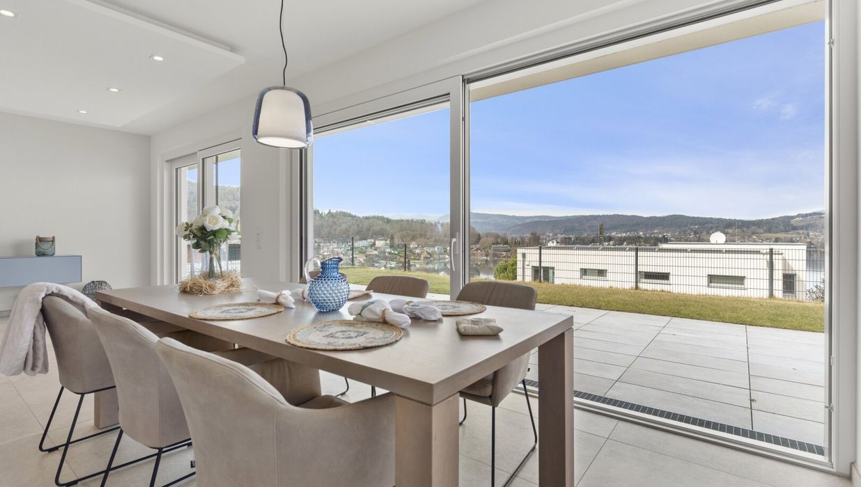 Der private Garten mit Blick auf den türkisen Wörthersee bietet eine gemütliche Atmosphäre, in der Wohnträume wahr werden.