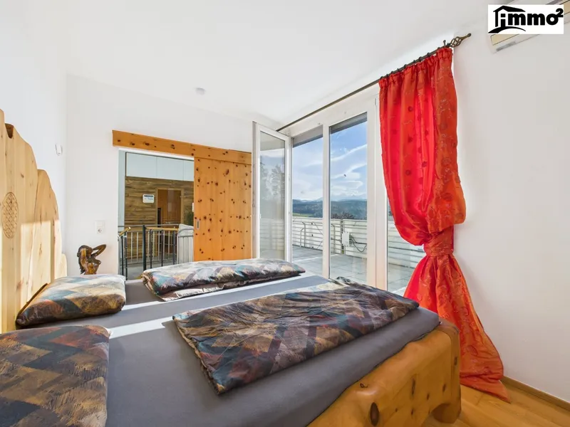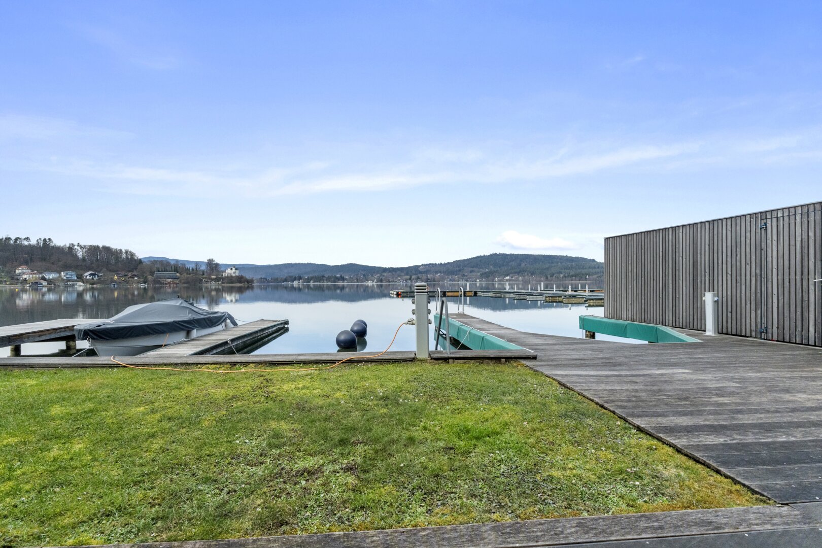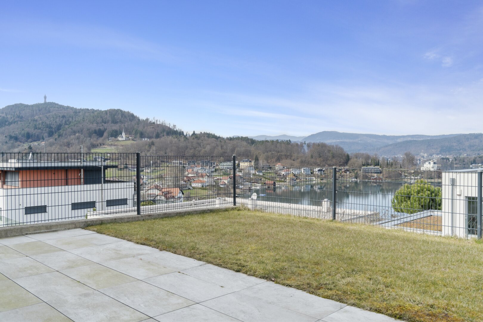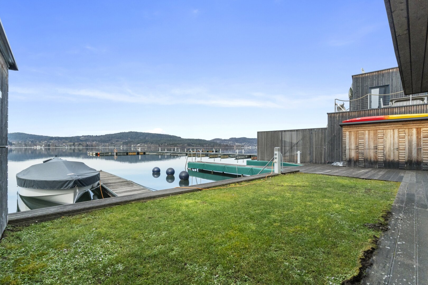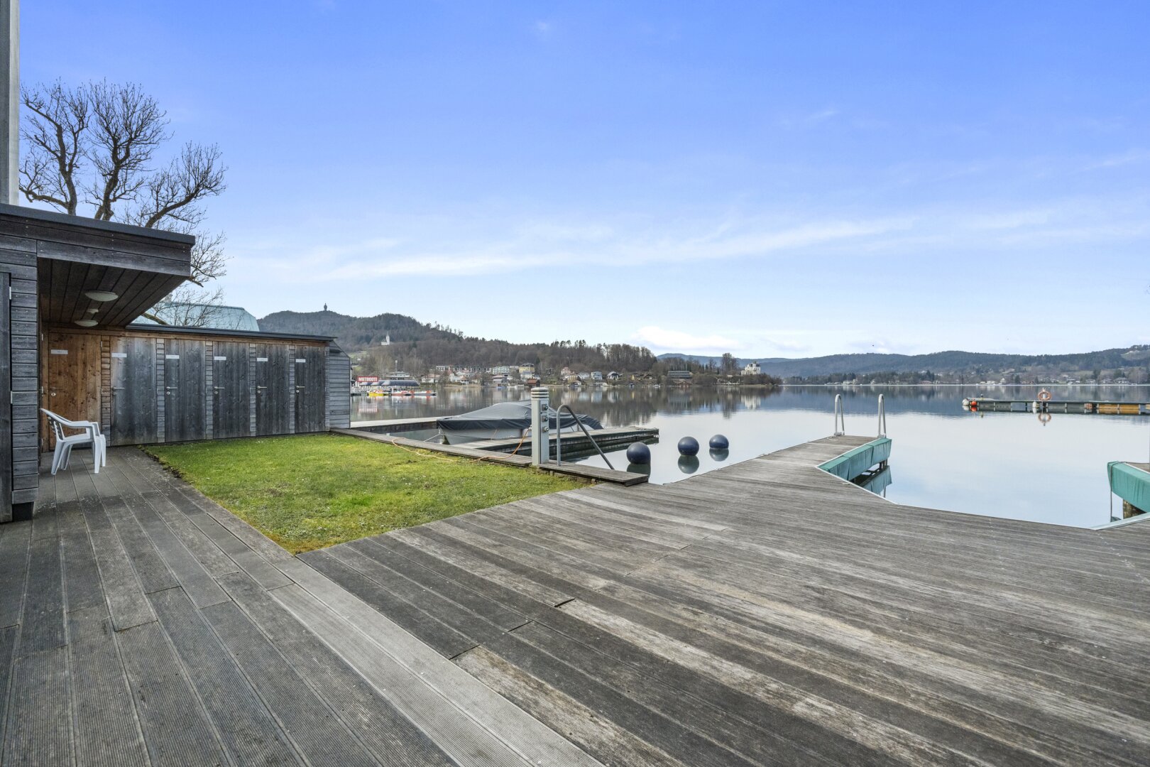 Der private Garten mit Blick auf den türkisen Wörthersee bietet eine gemütliche Atmosphäre, in der Wohnträume wahr werden.
