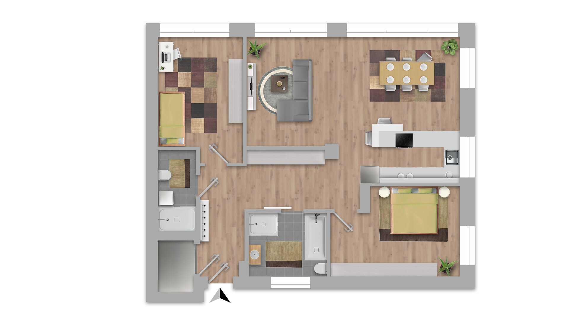 Mit zwei Schlafzimmern ist diese Wohnung auch ideal für Familien geeignet.