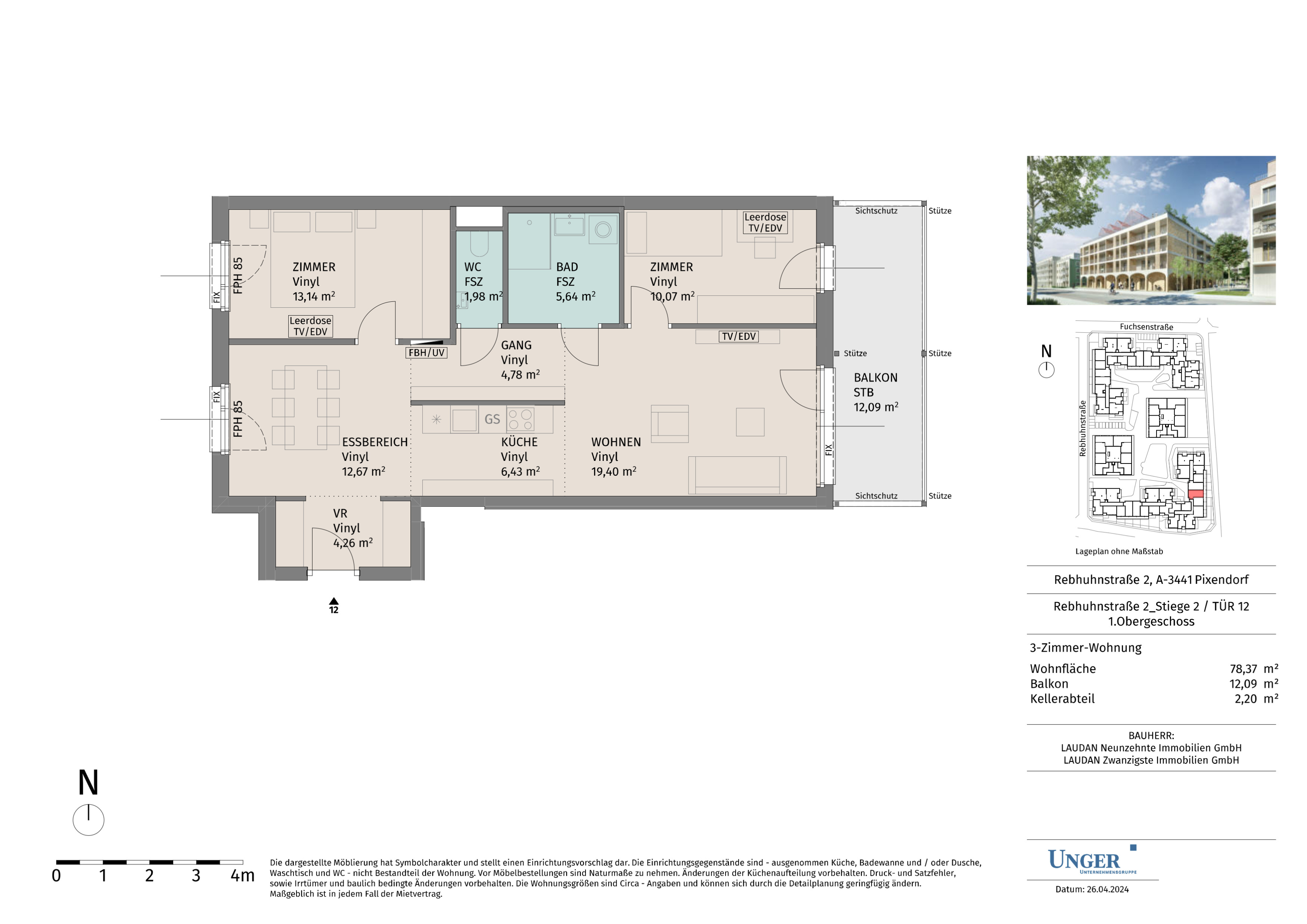In grüner Lage wurde vor kurzem das beeindruckende Wohnbauprojekt " Lebensraum Tullnerfeld " fertig gestellt, mit gesamt 308 Mietwohnungen sowie 7 Gewerbeflächen! Die 2-5 Zimmerwohnungen bieten Wohnflächen zwischen ca. 38m² und 115 m², somit finden hier sowohl Singles, Pärchen als auch Familien ihr künftiges Zuhause!