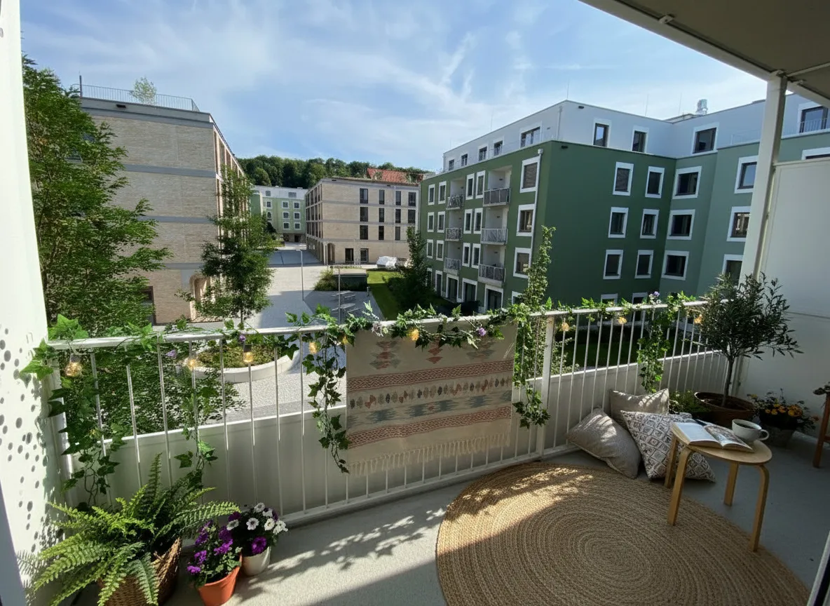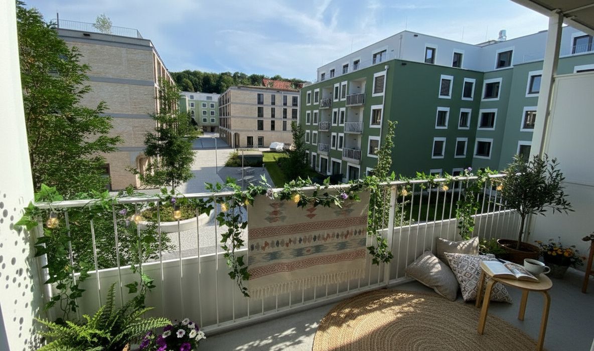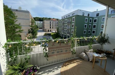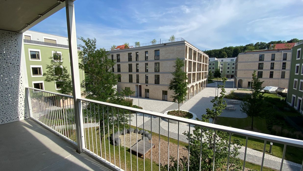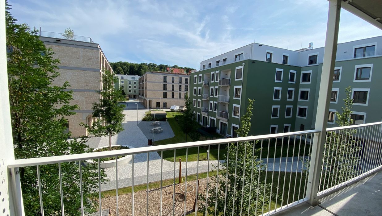 Ein Kindergarten und eine Tagesbetreuungsstätte für Kleinkinder direkt vor Ort machen das Leben besonders für Familien angenehm. Als besonderes Highlight ist ein gemütlicher Café/Hofladen geplant, der als Treffpunkt für Bewohner und Nachbarn dient. Zusätzlich stehen den Bewohnern Aufenthaltsmöglichkeiten auf den Dachflächen zur Verfügung, inklusive beschatteter Sitzmöglichkeiten und hauseigener Hochbeete für den Anbau von Gemüse und Kräutern.