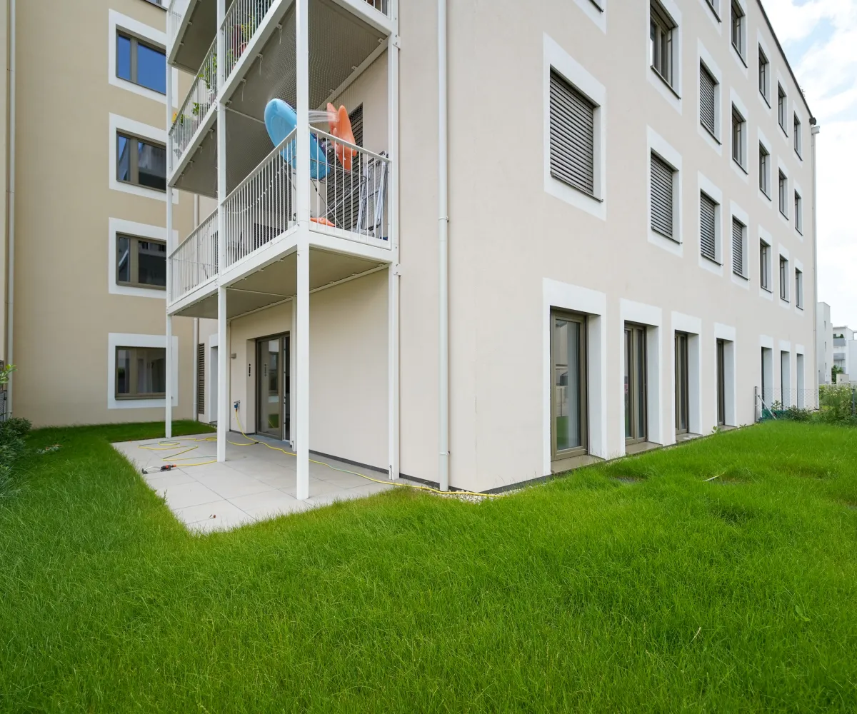 Ein Kindergarten und eine Tagesbetreuungsstätte für Kleinkinder direkt vor Ort machen das Leben besonders für Familien angenehm. Als besonderes Highlight ist ein gemütlicher Café/Hofladen geplant, der als Treffpunkt für Bewohner und Nachbarn dient. Zusätzlich stehen den Bewohnern Aufenthaltsmöglichkeiten auf den Dachflächen zur Verfügung, inklusive beschatteter Sitzmöglichkeiten und hauseigener Hochbeete für den Anbau von Gemüse und Kräutern.