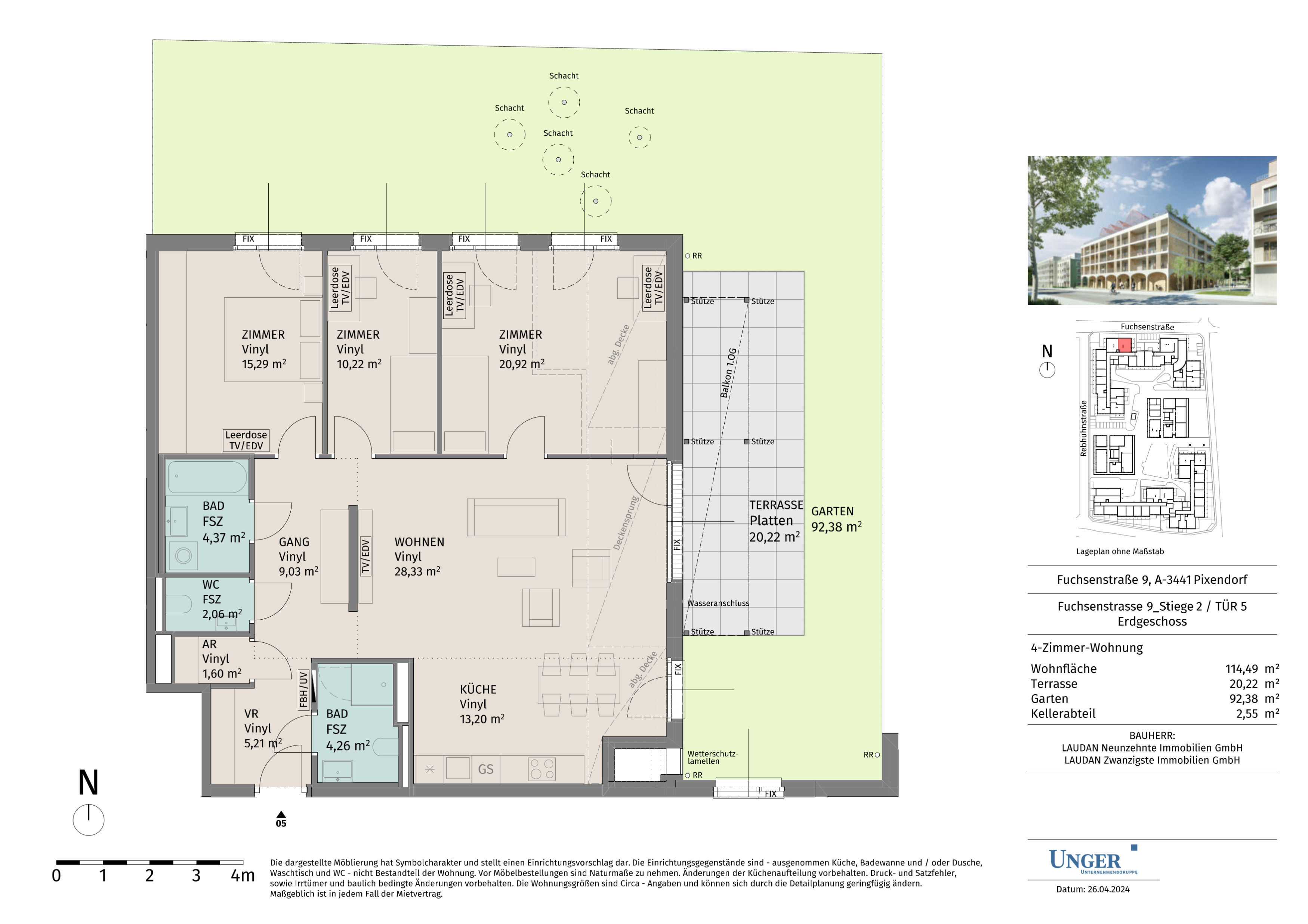 In grüner Lage wurde vor kurzem das beeindruckende Wohnbauprojekt " Lebensraum Tullnerfeld " fertig gestellt, mit gesamt 308 Mietwohnungen sowie 7 Gewerbeflächen! Die 2-5 Zimmerwohnungen bieten Wohnflächen zwischen ca. 38m² und 115 m², somit finden hier sowohl Singles, Pärchen als auch Familien ihr künftiges Zuhause!