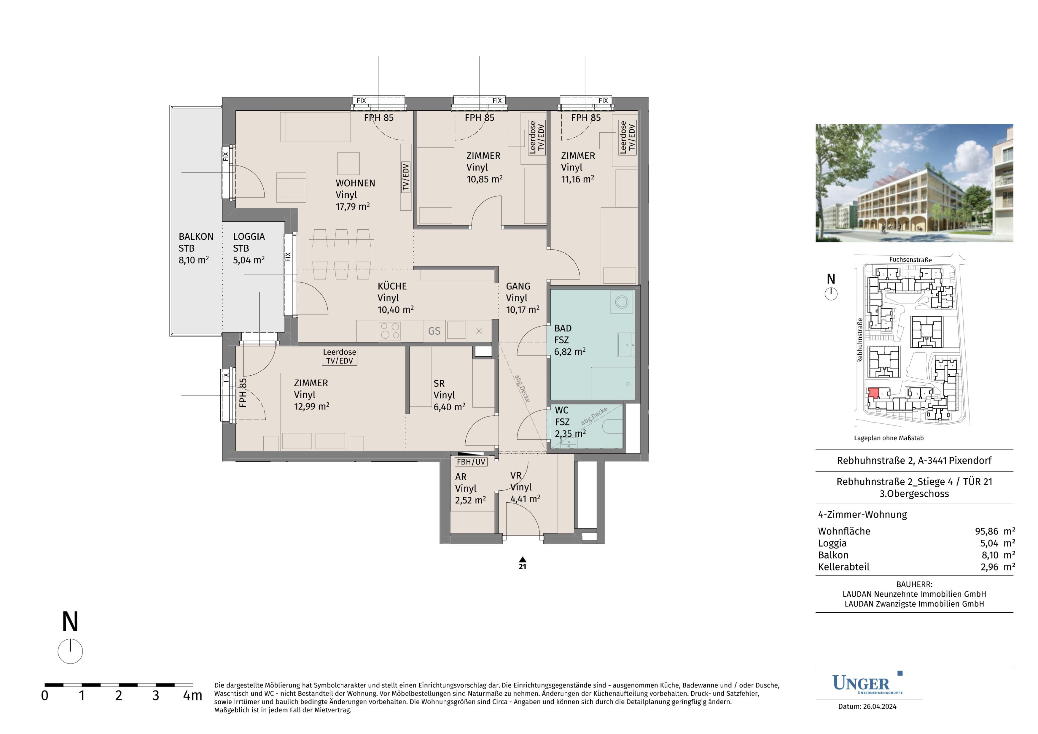 In grüner Lage wurde vor kurzem das beeindruckende Wohnbauprojekt " Lebensraum Tullnerfeld " fertig gestellt, mit gesamt 308 Mietwohnungen sowie 7 Gewerbeflächen! Die 2-5 Zimmerwohnungen bieten Wohnflächen zwischen ca. 38m² und 115 m², somit finden hier sowohl Singles, Pärchen als auch Familien ihr künftiges Zuhause!
