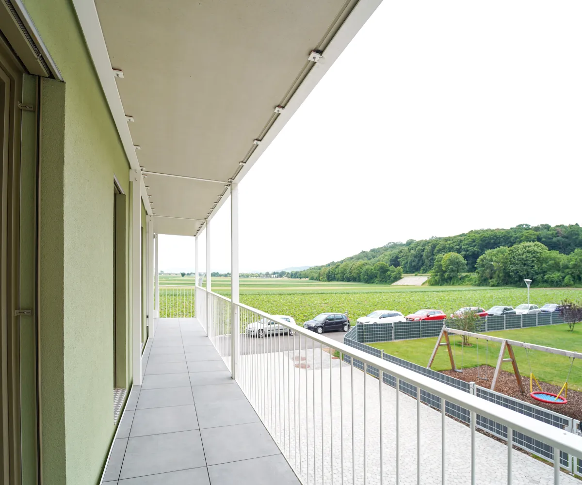 Ein Kindergarten und eine Tagesbetreuungsstätte für Kleinkinder direkt vor Ort machen das Leben besonders für Familien angenehm. Als besonderes Highlight ist ein gemütlicher Café/Hofladen geplant, der als Treffpunkt für Bewohner und Nachbarn dient. Zusätzlich stehen den Bewohnern Aufenthaltsmöglichkeiten auf den Dachflächen zur Verfügung, inklusive beschatteter Sitzmöglichkeiten und hauseigener Hochbeete für den Anbau von Gemüse und Kräutern.