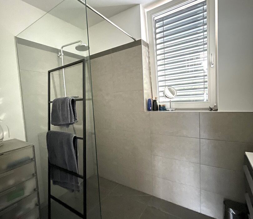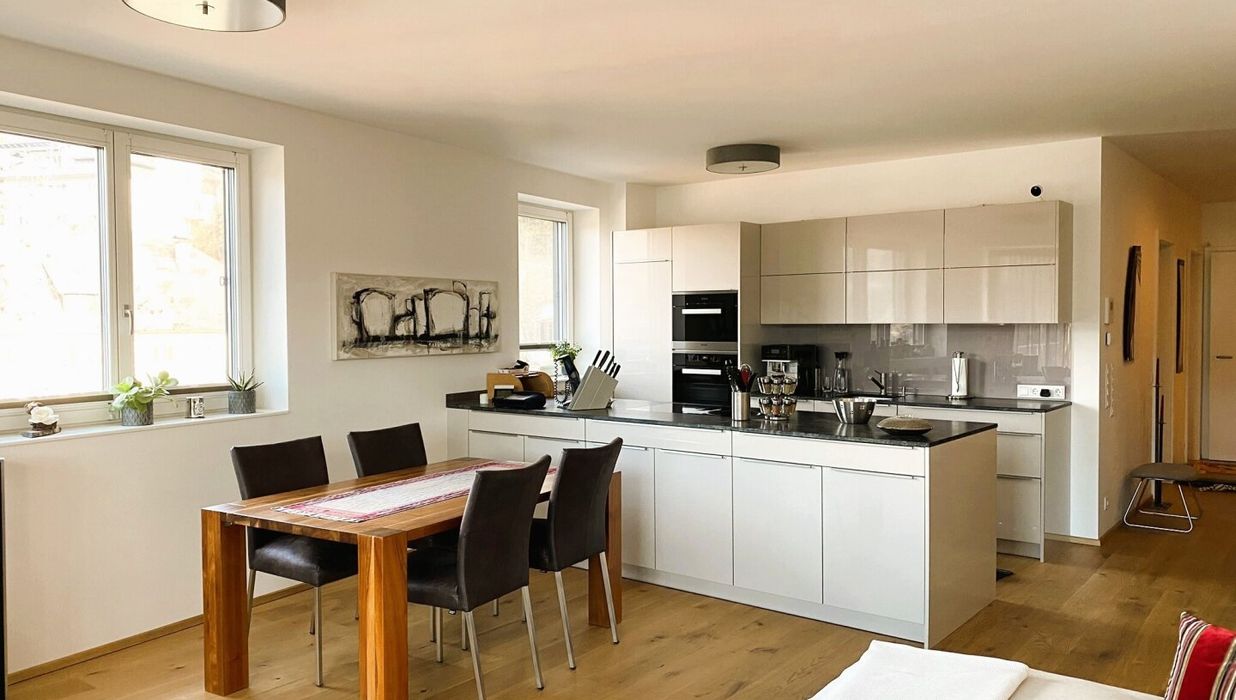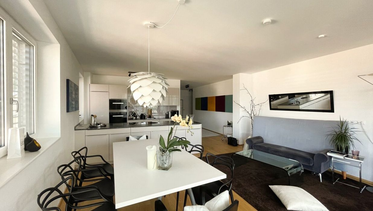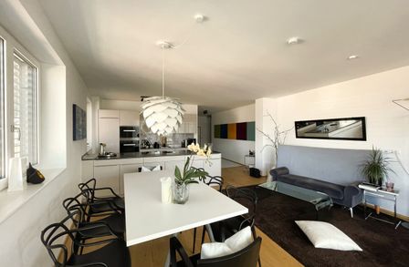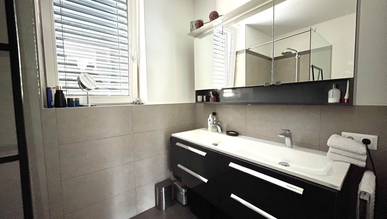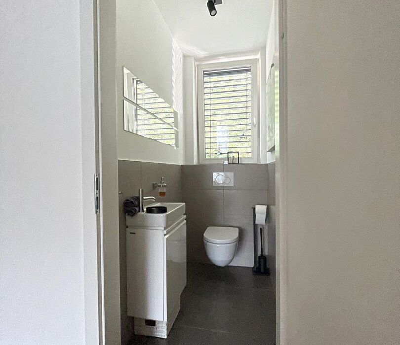 In der hochwertigen DAN Küche mit modernen Geräten und BORA Kochfeldabzugssystem können Sie Ihre kulinarischen Fähigkeiten unter Beweis stellen. Ebenso exklusiv ist auch das Badezimmer mit einem Glas-Doppelwaschtisch mit 4 Ladenauszug sowie ein traumhafter Spiegelschrank in Anthrazit ausgestattet.