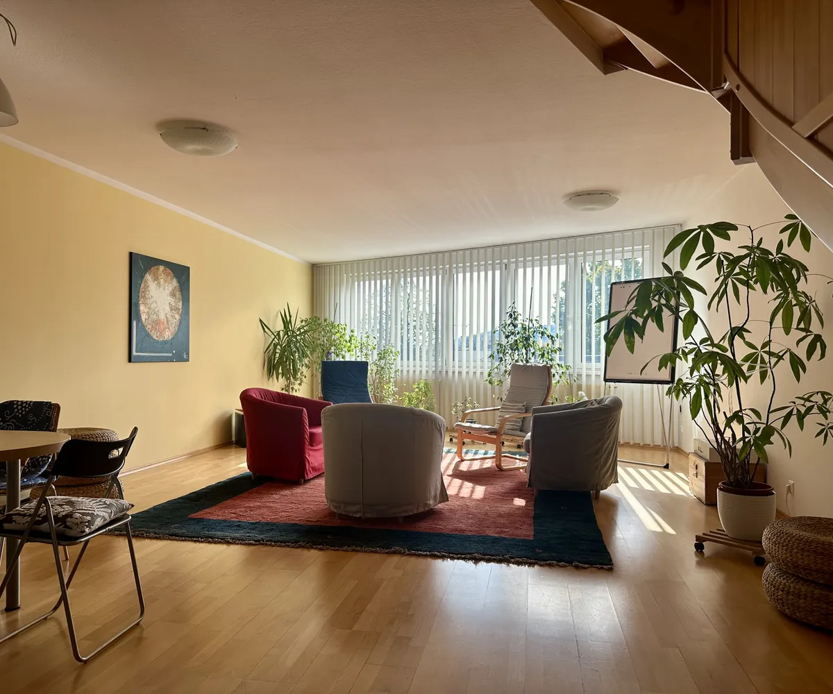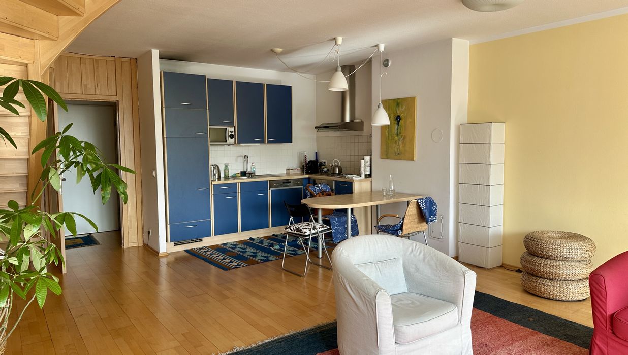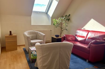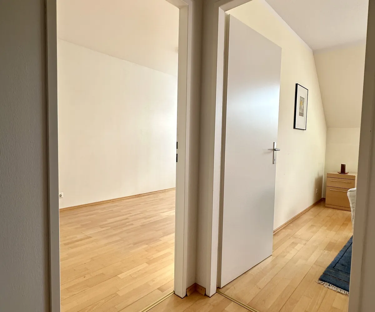 Mit einem Kaufpreis von 399.000,00 € erwartet Sie hier eine wunderbare Gelegenheit, in eine Wohnung einzuziehen, die sowohl durch ihre moderne Ausstattung als auch durch ihren Ausblick nach Süden besticht. Schon beim Eintreten in den großzügigen Wohnraum bemerken Sie den herrlichen Grünblick und die Nähe zu Zentrum und Waldrand! Die drei lichtdurchfluteten Zimmer (unteres Geschoss: Wohnzimmer 43,13,m², oberes Geschoss: Zimmer 14,47 und 13,67 m²) bieten ausreichend Platz für Ihre individuellen Wohnbedürfnisse und können nach Ihrem persönlichen Stil gestaltet werden. Durch die Anordnung der Räume hat die Wohnung den Charakter eines kleinen Einfamilienhauses und die räumliche Trennung vom Wohn- zum Schlaf/Arbeitsbereich ist sehr angenehm.