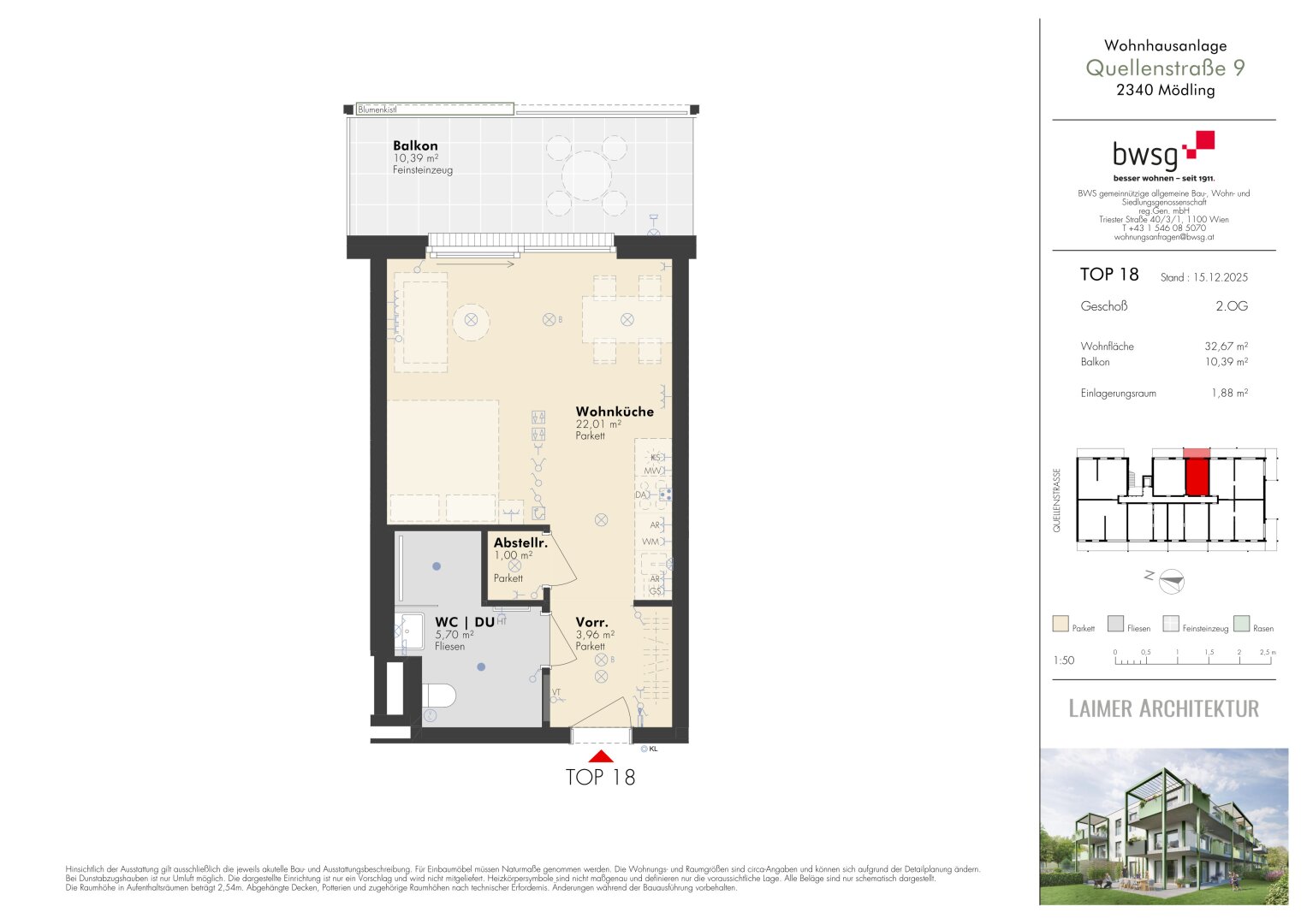 Die Wohnanlage punktet aber auch mit durchdachten Details: Ein Fahrrad- und Kinderwagenabstellplatz sowie barrierefreie Liftanlagen sorgen für ein Plus an Komfort. Für umweltbewusste Mobilität steht eine eigene E-Ladestation zur Verfügung. Die Wohnungen werden über ein energieeffizientes Fernwärmesystem beheizt, das niedrige Betriebskosten und nachhaltiges Wohnen ermöglicht.