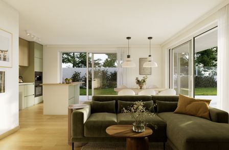 Midori-Living-Rundgang in 3D: Eine der Erdgeschosswohnungen freut sich auf Ihren virtuellen Besuch .