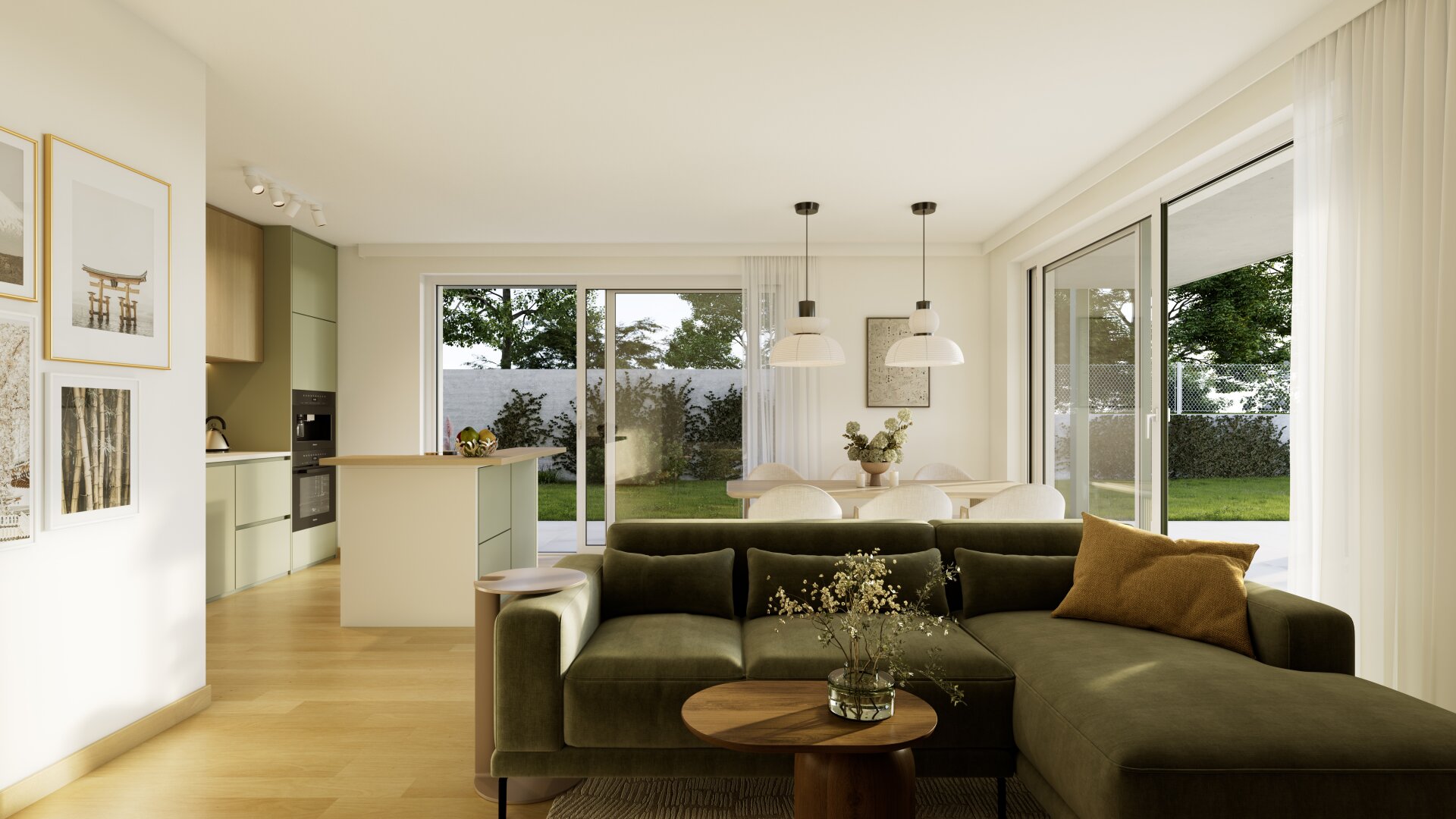 Midori-Living-Rundgang in 3D: Eine der Erdgeschosswohnungen freut sich auf Ihren virtuellen Besuch .