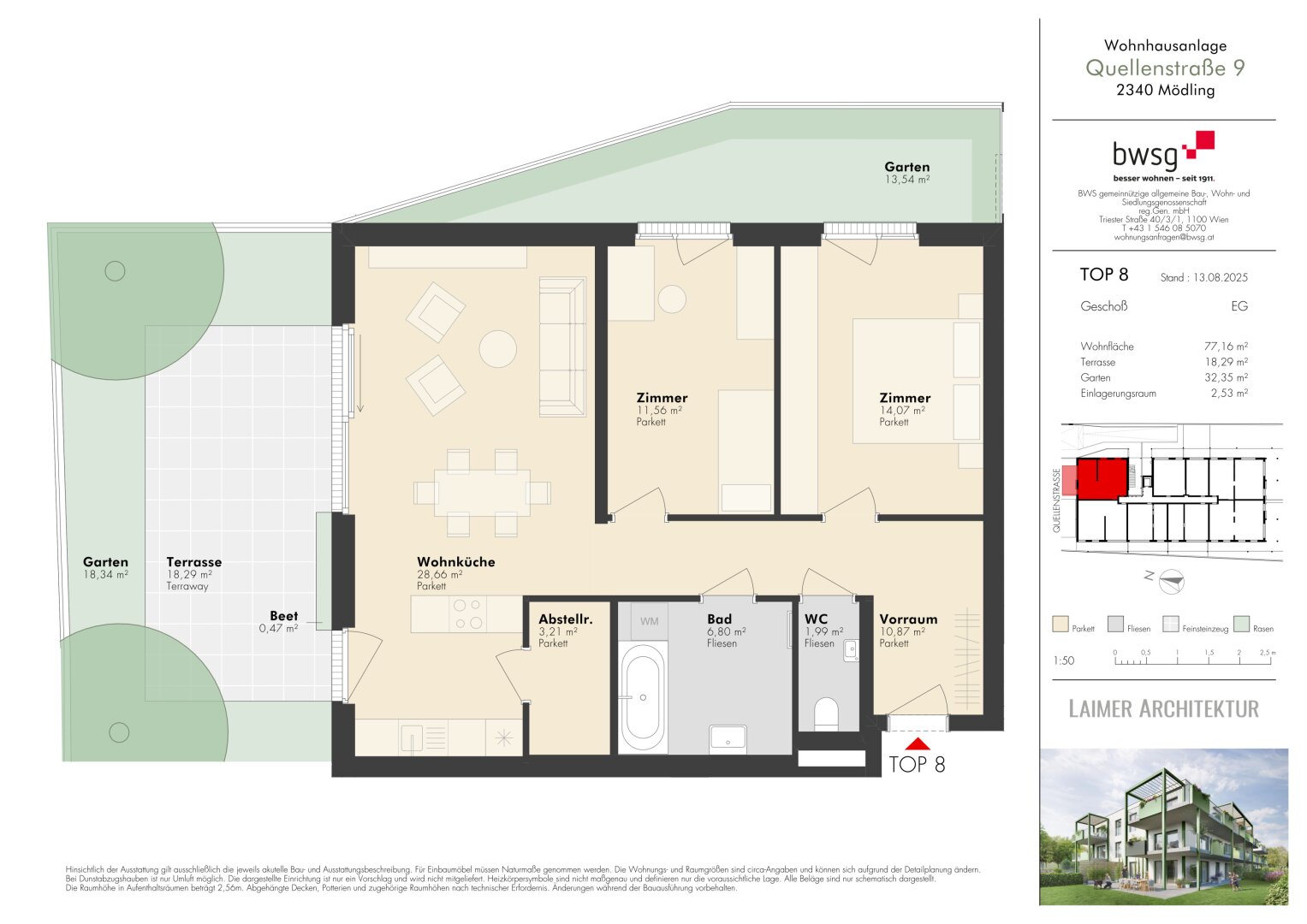 Die Wohnanlage punktet aber auch mit durchdachten Details: Ein Fahrrad- und Kinderwagenabstellplatz sowie barrierefreie Liftanlagen sorgen für ein Plus an Komfort. Für umweltbewusste Mobilität steht eine eigene E-Ladestation zur Verfügung. Die Wohnungen werden über ein energieeffizientes Fernwärmesystem beheizt, das niedrige Betriebskosten und nachhaltiges Wohnen ermöglicht.