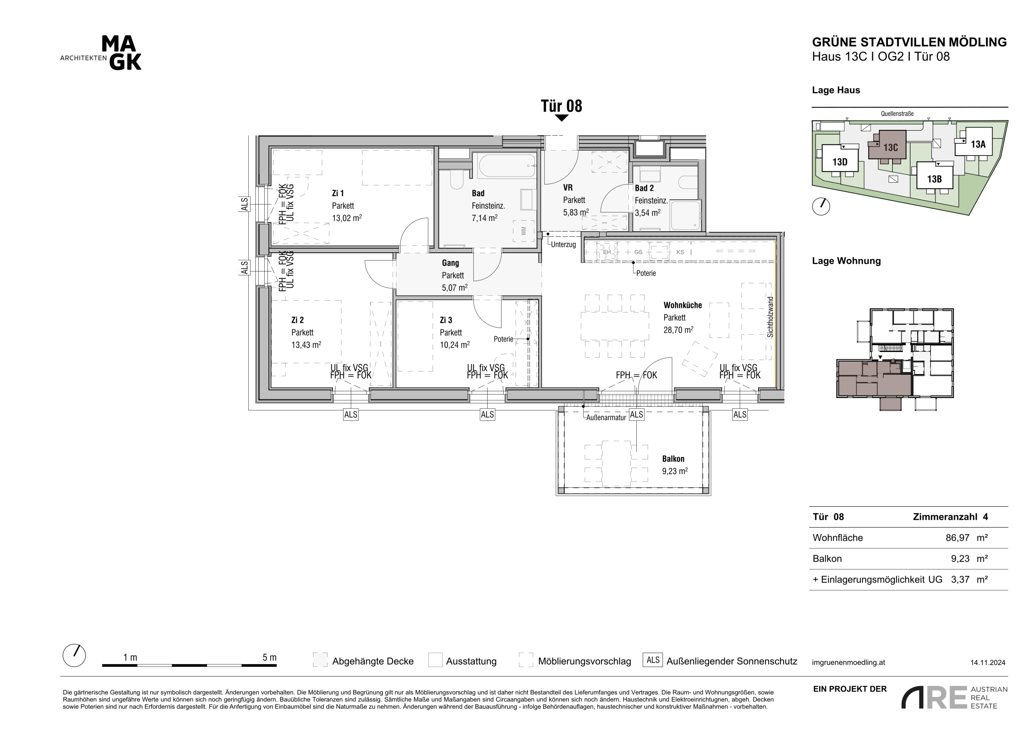Mit Sommer 2026 werden vier baulich voneinander getrennte Stadtvillen in moderner Holzbauweise bezugsfertig. Die jeweils viergeschossigen Gebäude umfassen insgesamt 47 hochwertig geplante Wohnungen mit zwei bis fünf Zimmern und bieten zeitgemäßen Wohnraum für unterschiedlichste Lebensmodelle.