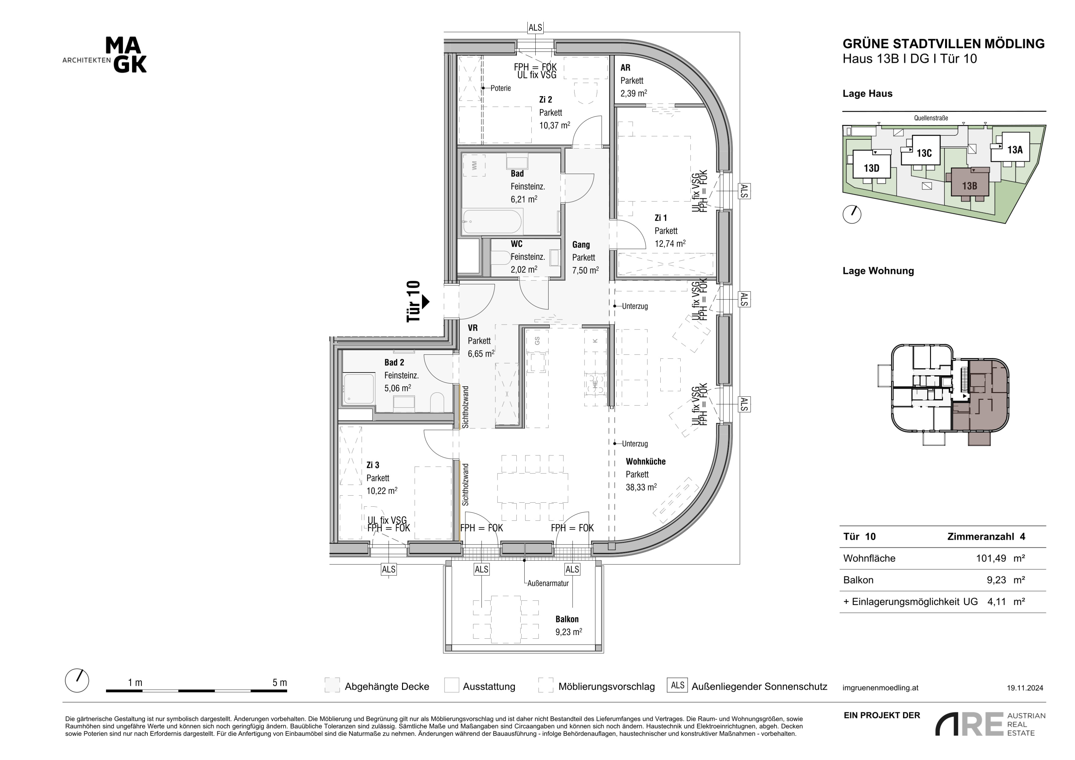 Mit Sommer 2026 werden vier baulich voneinander getrennte Stadtvillen in moderner Holzbauweise bezugsfertig. Die jeweils viergeschossigen Gebäude umfassen insgesamt 47 hochwertig geplante Wohnungen mit zwei bis fünf Zimmern und bieten zeitgemäßen Wohnraum für unterschiedlichste Lebensmodelle.