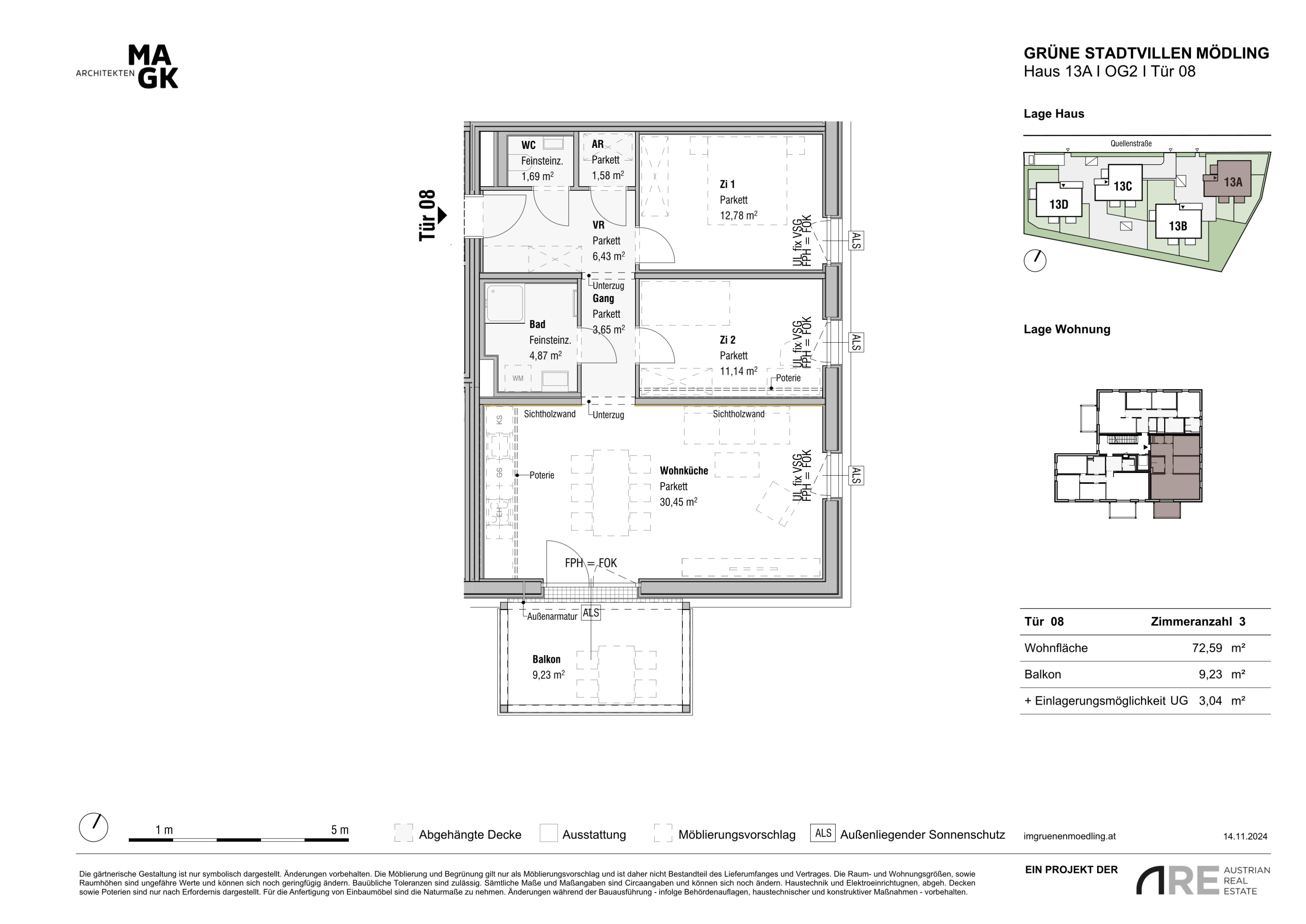 Mit Sommer 2026 werden vier baulich voneinander getrennte Stadtvillen in moderner Holzbauweise bezugsfertig. Die jeweils viergeschossigen Gebäude umfassen insgesamt 47 hochwertig geplante Wohnungen mit zwei bis fünf Zimmern und bieten zeitgemäßen Wohnraum für unterschiedlichste Lebensmodelle.