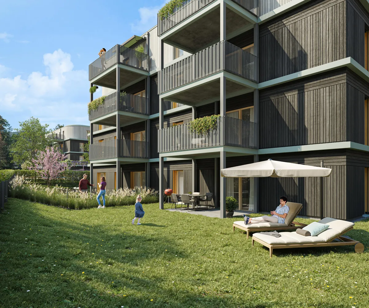 Alle Wohnungen verfügen über private Freiflächen und verbinden so urbanes Wohnen mit einem naturnahen Lebensgefühl. Ergänzt wird das nachhaltige Gesamtkonzept durch Photovoltaikanlagen auf den Dächern sowie eine moderne Geothermieanlage, die das Gebäudeensemble klimaschonend mit Wärme versorgt.