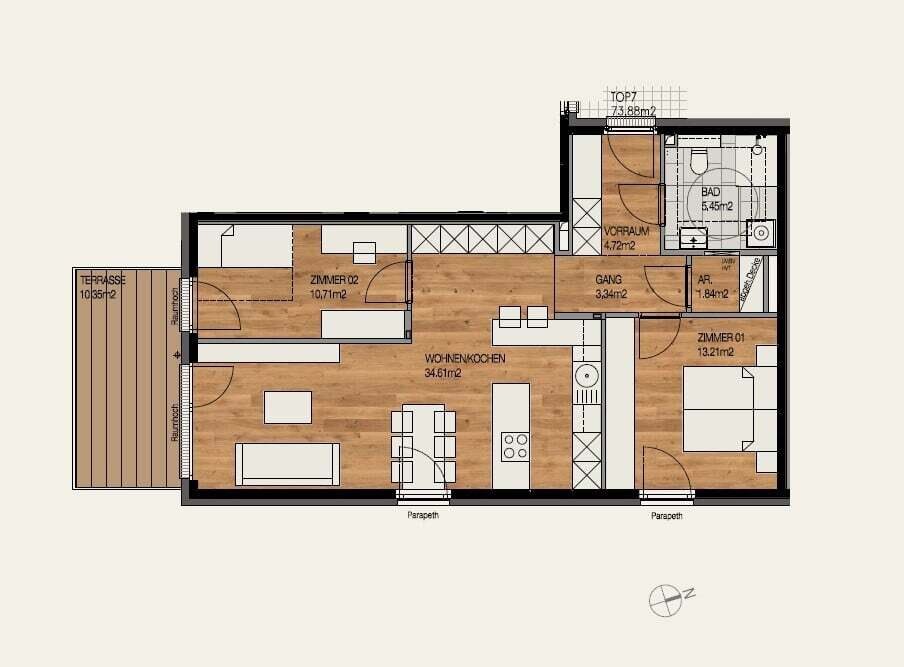 Diese moderne Terrassenwohnung im Neubau bietet Ihnen auf ca. 74 m² Wohnfläche ein zeitgemäßes und komfortables Zuhause.