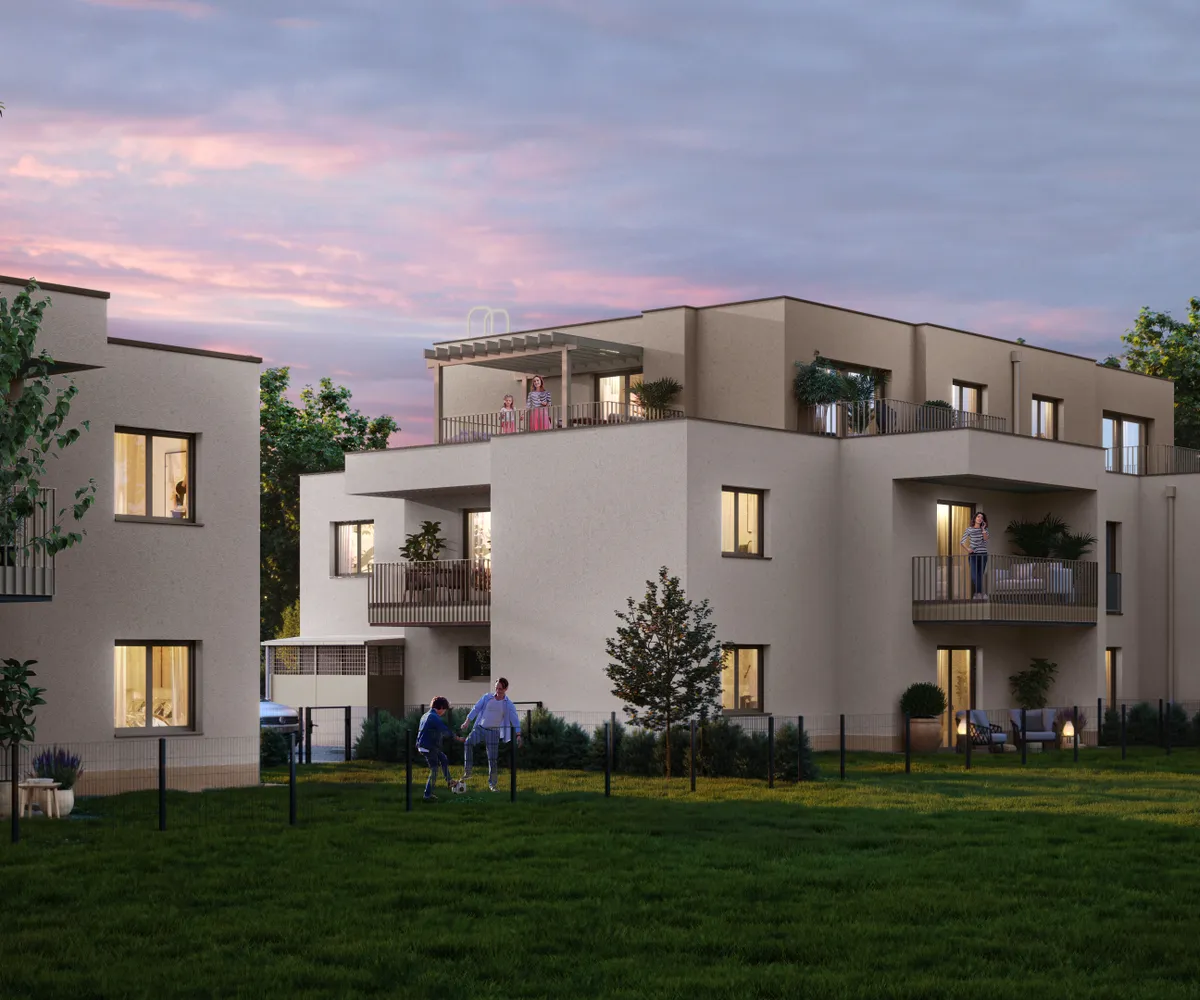 Die Wohnungen bestechen durch ihre gelungene Balance aus kompaktem Design und hoher Alltagstauglichkeit. Mit bestens durchdachten Grundrissen und optimaler Raumaufteilung bieten die Wohneinheiten kompromisslosen Komfort und einen unkomplizierten, klaren Stil. Die Wohnungen im Erdgeschoss verwöhnen Sie mit Terrassen und Eigengärten, während die Wohnungen im ersten Stockwerk großzügige Balkone bieten. Die Penthousewohnungen sind der luxuriöse Höhepunkt des Neubaus und bieten zwischen 63 m² und 84 m² offen gestalteten Wohnraum sowie beeindruckende 30 m² große Terrassen. Hier erwarten Sie atemberaubende Panoramablicke und eine helle Atmosphäre mit Wohlfühlfaktor. Die großzügig gestalteten Räume lassen Raum für Ihre individuellen Wohnträume.